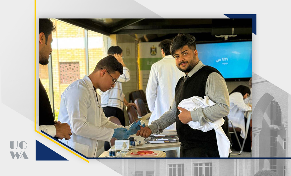 نظّمت كلية التمريض في جامعة وارث الأنبياء (ع) حملة صحية داخل أروقة الجامعة، للتحري عن مرض السكري من خلال إجراء فحوصات مجانية لعدد من الأساتذة والطلبة، وذلك ضمن جهودها لتعزيز الصحة العامة ودعم أهداف التنمية المستدامة.