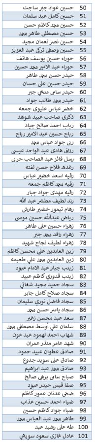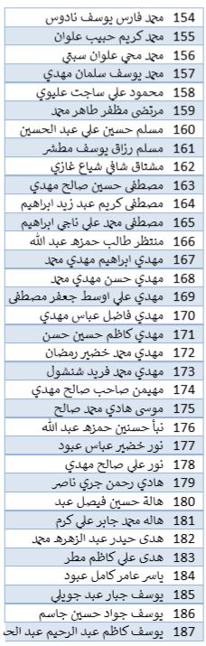 أسماء الطلبة المقبولين في كلية القانون للدراسة الصباحي