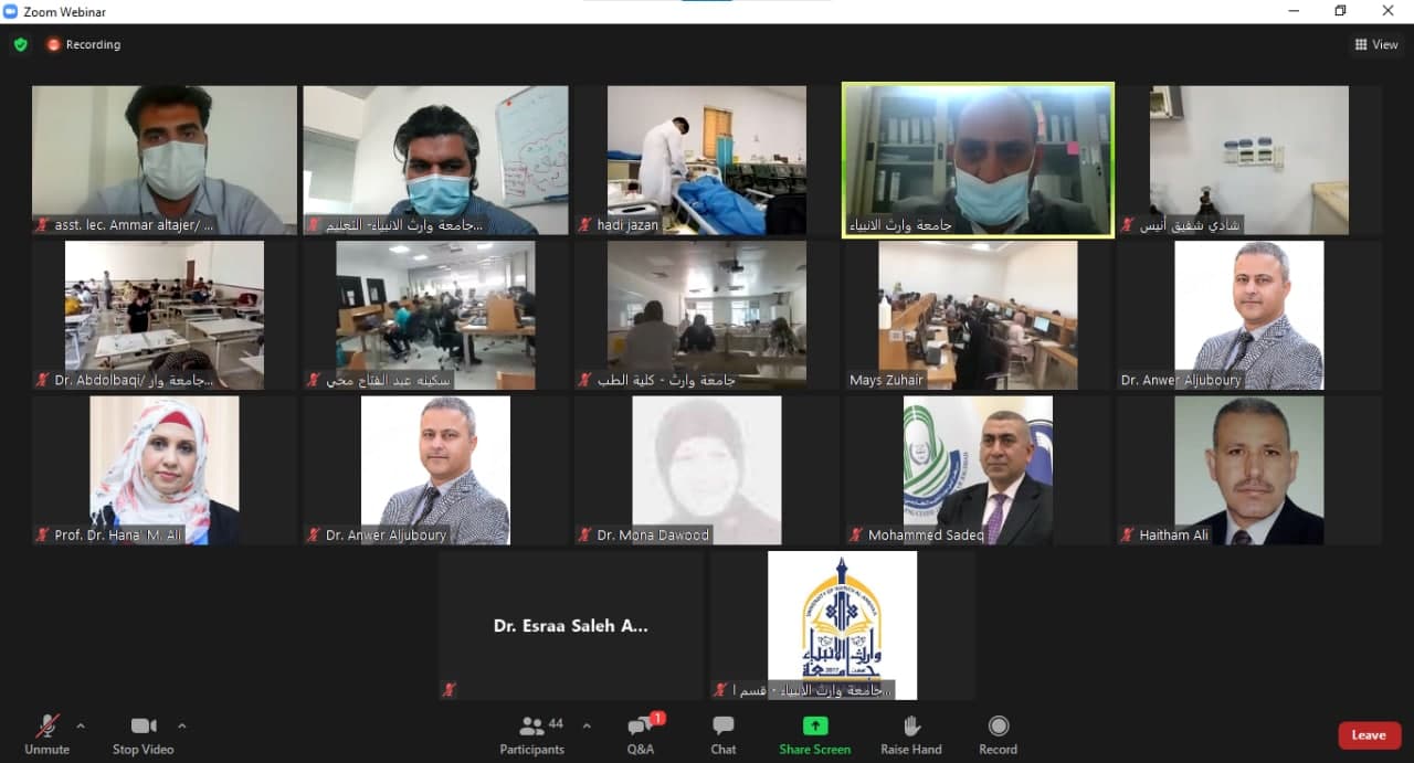 زار الفريق الوزاري المختص بمتابعة الامتحانات النهاية الالكترونية والحضورية جامعة وارث الانبياء (عليه السلام) يوم الاثنين الموافق 2021/7/12 وذلك للاطلاع على سير الامتحانات النهائية في الجامعة خلال الزيارة الكترونيا تم اللقاء مع السيد رئيس الجامعة الدكتور عباس الدعمي و مسؤول التعليم الالكتروني الدكتور حيدر الغانمي وحضر في الاجتماع عدد من التدريسيين من الكليات والاقسام التي تؤدي الامتحان في ذلك الوقت. تم خلال الزيارة تعريف الفريق الوزاري بالاجراءات والتدابير الوقائية التي اتخذتها الجامعة للوقاية من انتقال الاصابات كما تجولت الوزارة الكترونيا في القاعات الامتحانية العملية و التحدث مع عدد من الطلبة