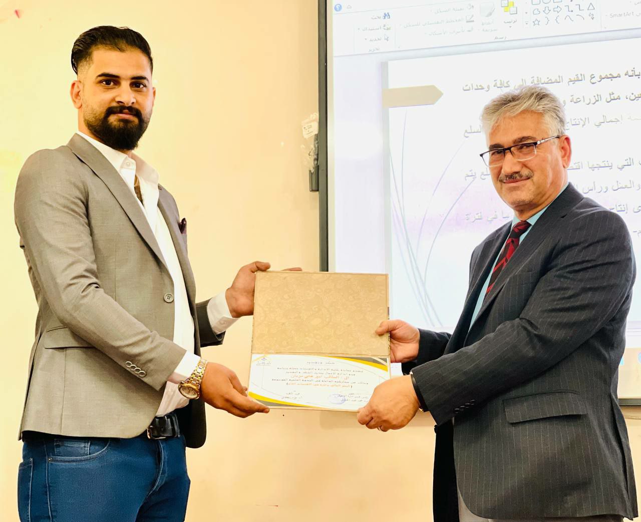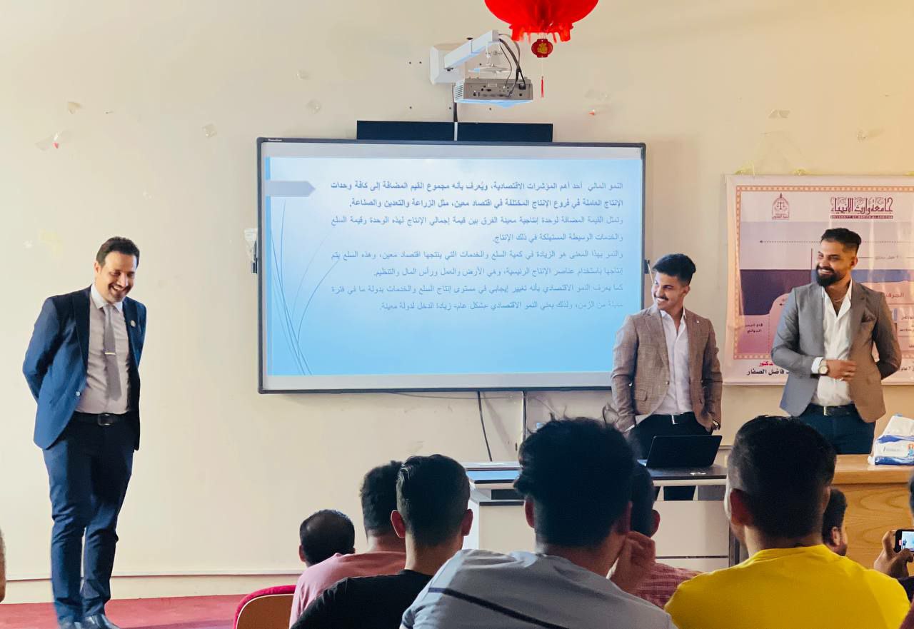 ضمن النشاطات الطلابية العلمية لقسم ادارة الاعمال في كلية الإدارة والاقتصاد  بجامعة وارث الانبياء(عليه السلام)، قدم عدد من طلبة المرحلة الاولى ندوة علمية بعنوان (النمو المالي وأثرة في الاقتصاد العام).