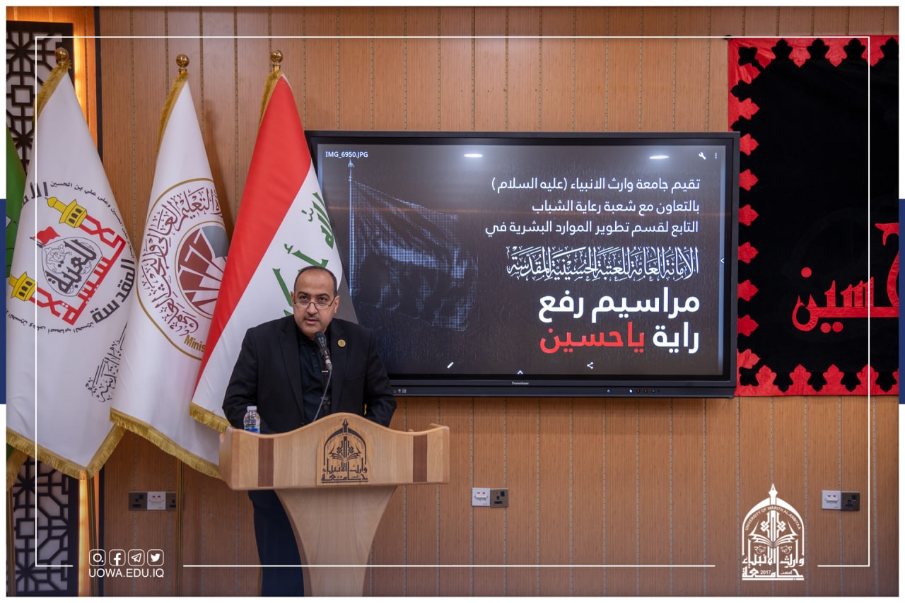 أقامت جامعة وارث الانبياء(عليه السلام) وبالتعاون مع شعبة رعاية الشباب التابع لقسم تطوير الموارد البشرية في العتبة الحسينية المقدسة مراسم رفع راية ياحسين السوداء في الجامعة إيذاناً ببدء موسم الأحزان المحمدية_ شهر محرم الحرام بمشاركة عدد من اساتذة وموظفي الجامعة والطلب.