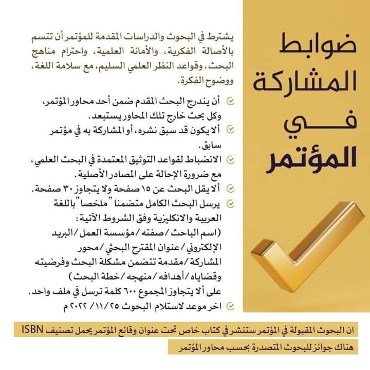 محاور المؤتمر وضوابط المشاركة موضحة بالصور