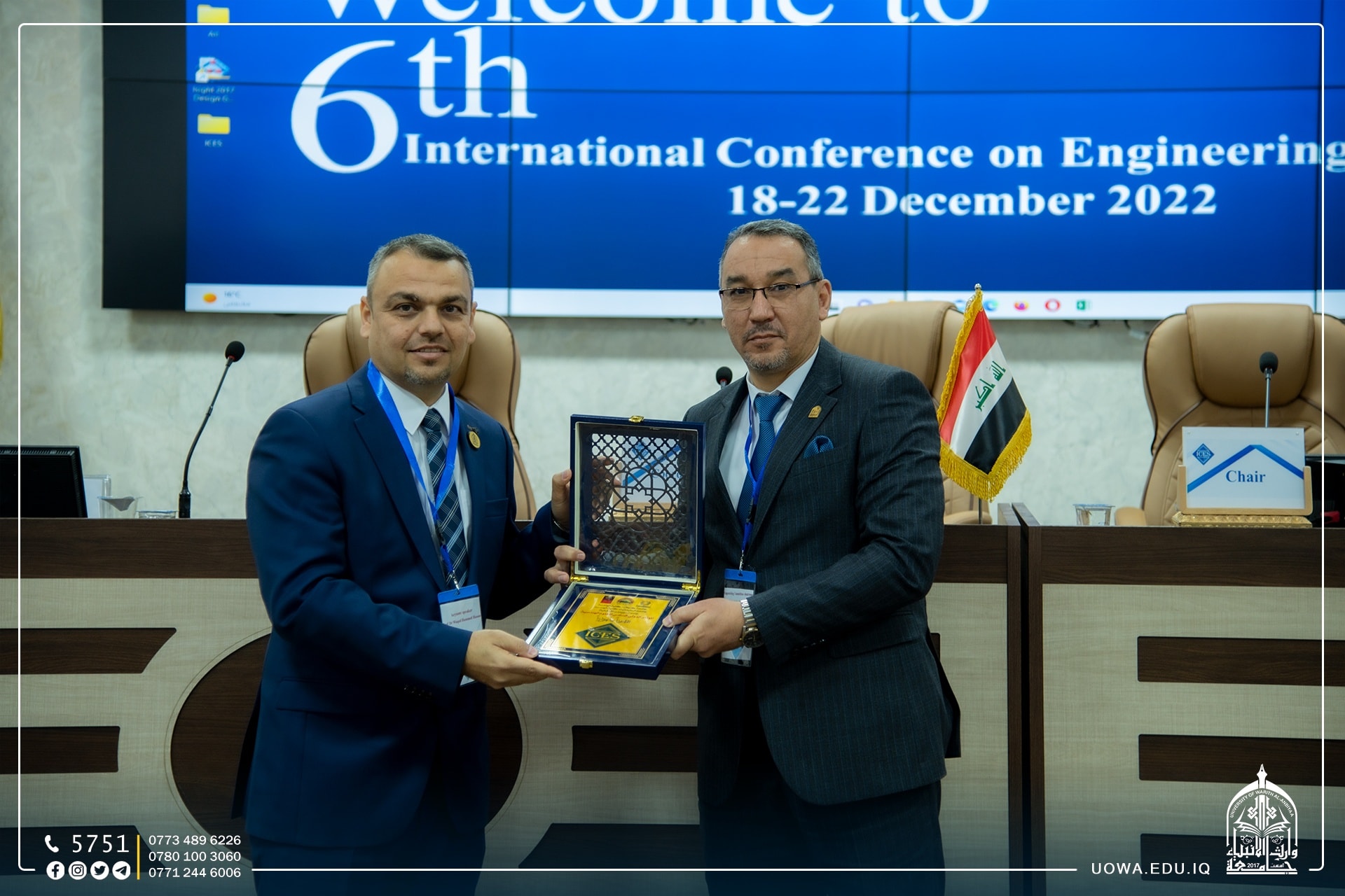 شاركت رئاسة جامعة وارث الانبياء(عليه السلام) متمثلة بالاستاذ الدكتور ابراهيم الحياوي، في المؤتمر الدولي السادس للعلوم الهندسية ICES2022 ,