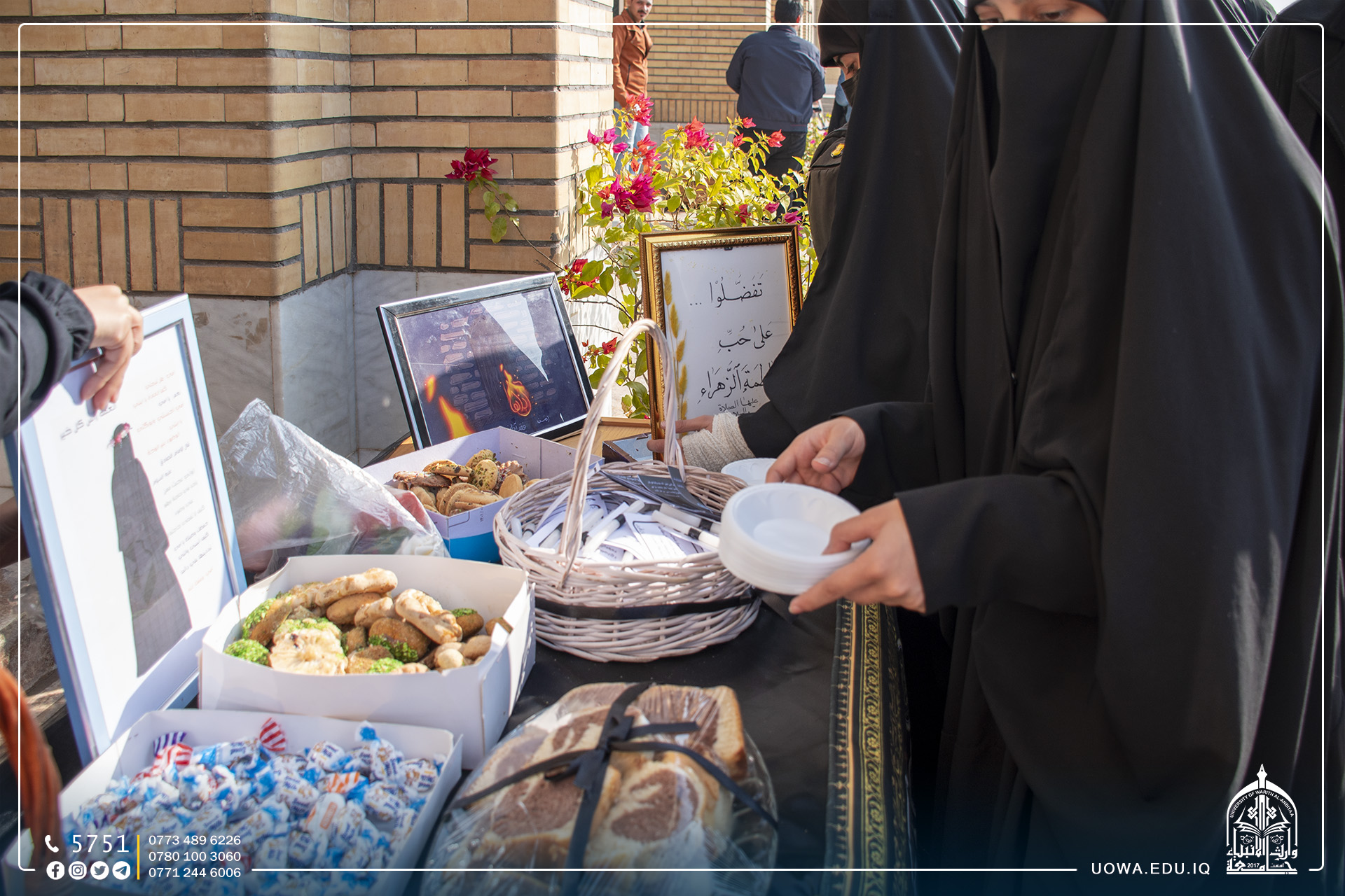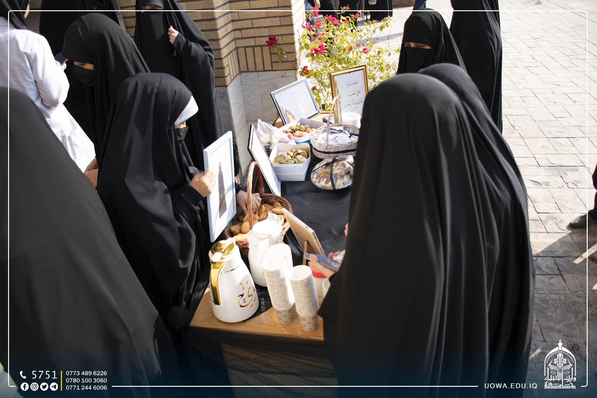 بالصور... "بعبارة على حب الزهراء (عليها السلام)" مبادرة طالبات كلية الهندسة بإقامة تعزية بذكرى استشهاد سيدة نساء العالمين فاطمة الزهراء (عليها السلام)