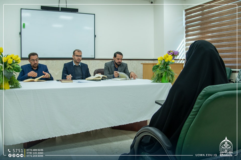 وجرى الاختبار بتحكيم لجنة علمية مشتركة من اساتذة كلية العلوم الاسلامية والعتبة الحسينية المقدسة .