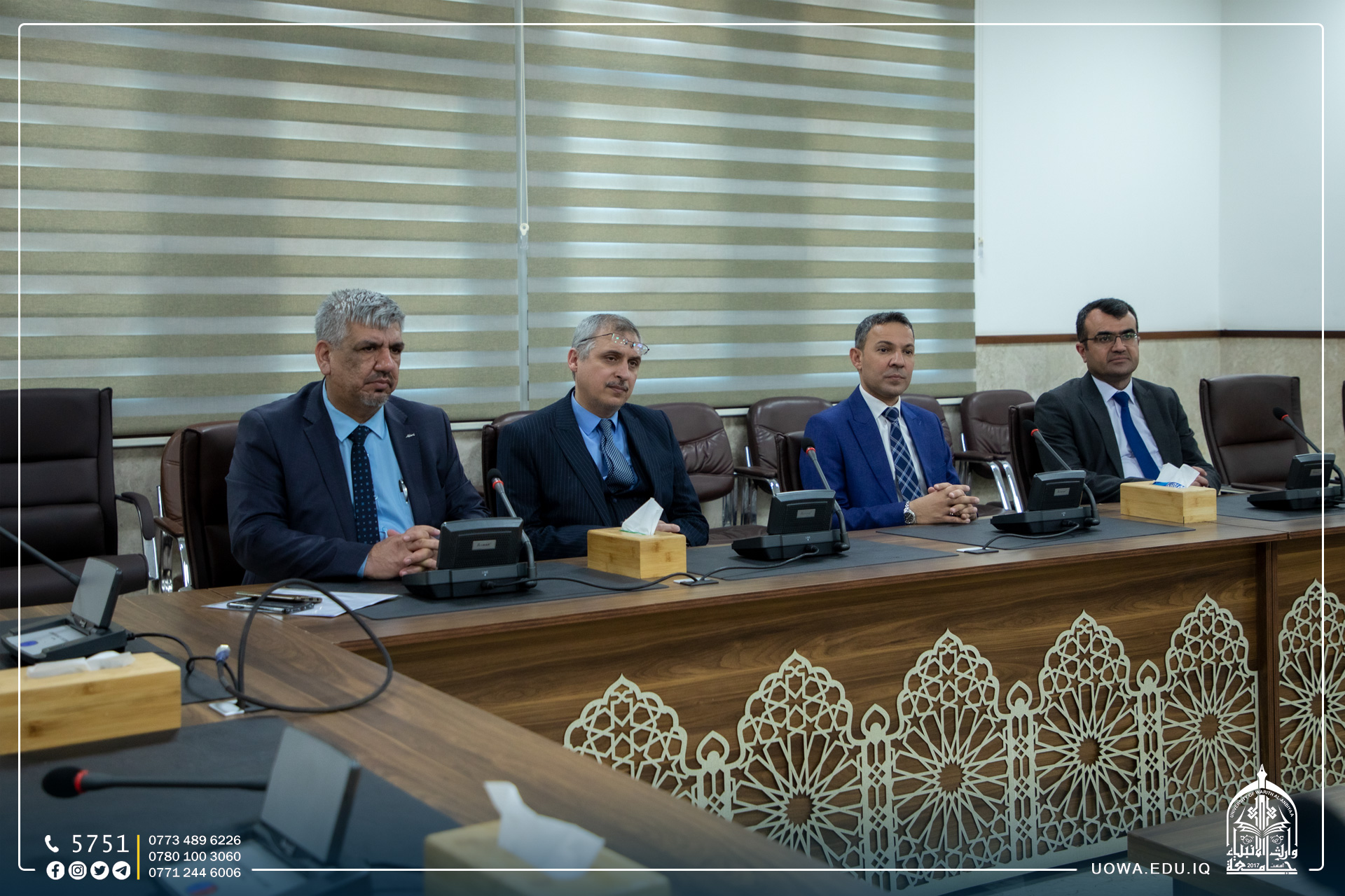 تشرف وفد جامعة السليمانية، بزيارة المتولي الشرعي للعتبة الحسينية المقدسة سماحة الشيخ عبد المهدي الكربلائي (دام عزه)، وجناب الامين العام الاستاذ حسن رشيد العبايجي (دام توفيقه) برفقة السيد رئيس الجامعة الاستاذ الدكتور ابراهيم الحياوي .