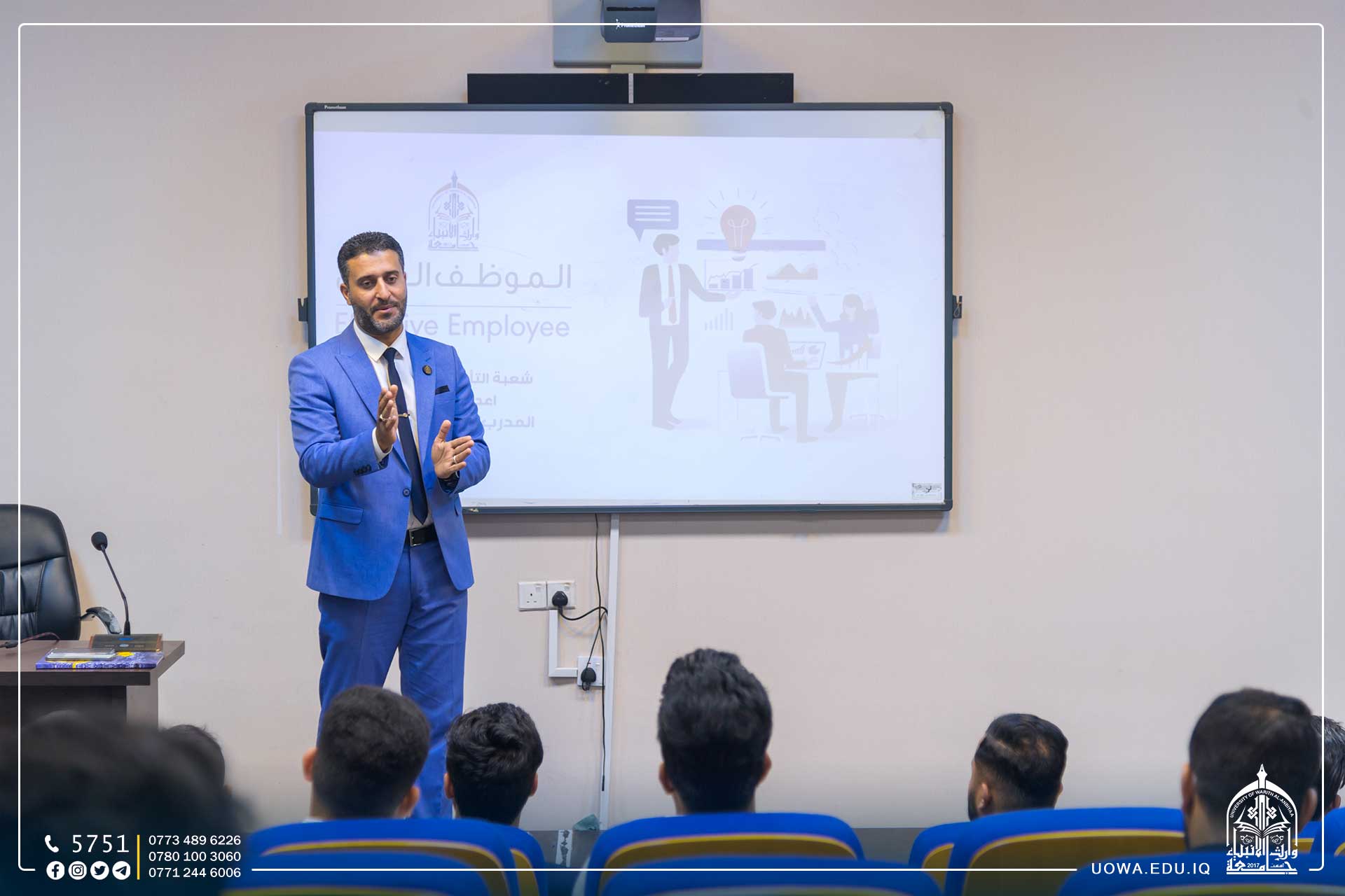 دورة تدريبية للطلبة الخريجين وطلبة المرحلة الرابعة بعنوان (الموظف المثالي) التي تستمر لمدة ثلاثة أيام يقدمها الاستاذ (صفاء السيلاوي) مدير الشعبة.