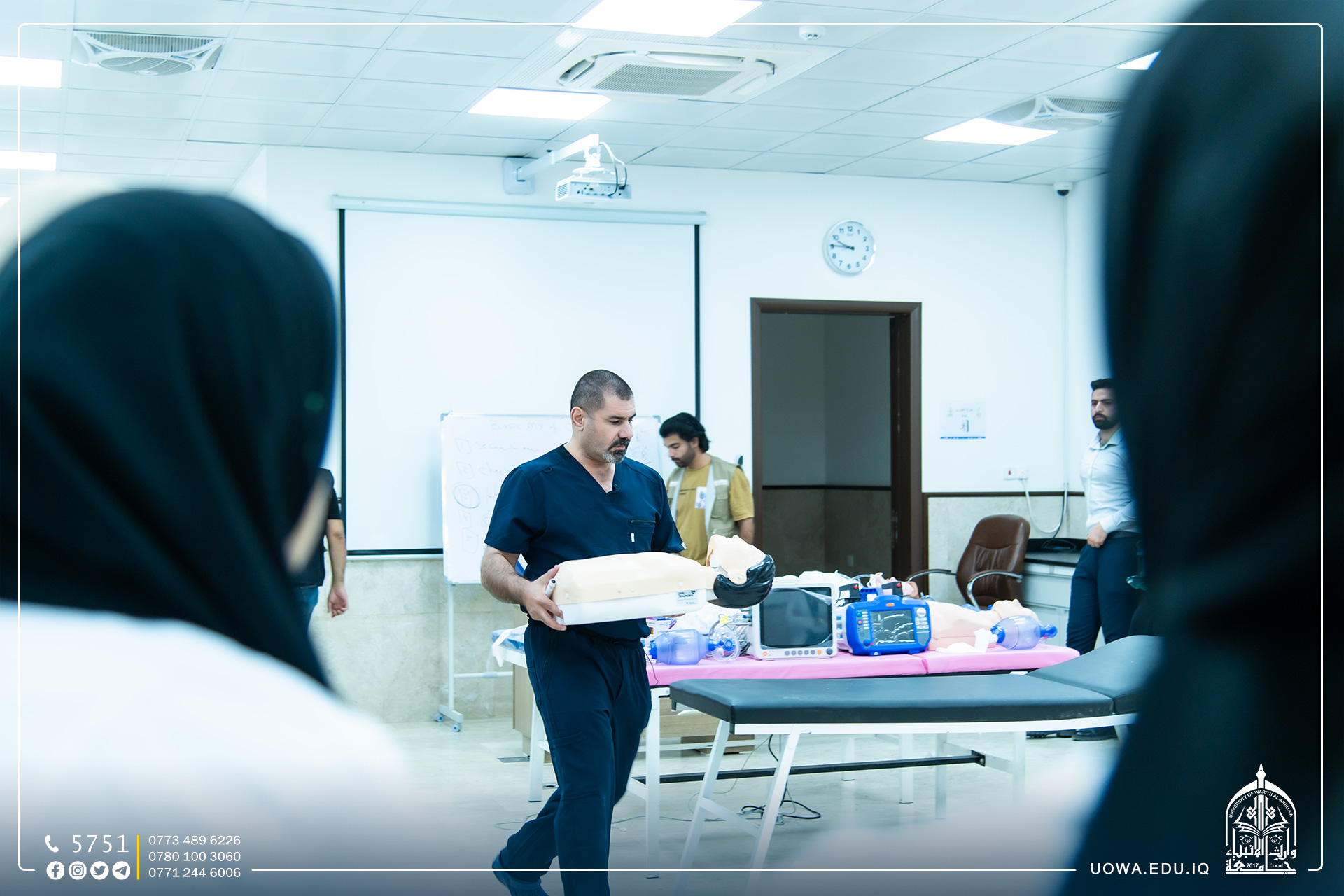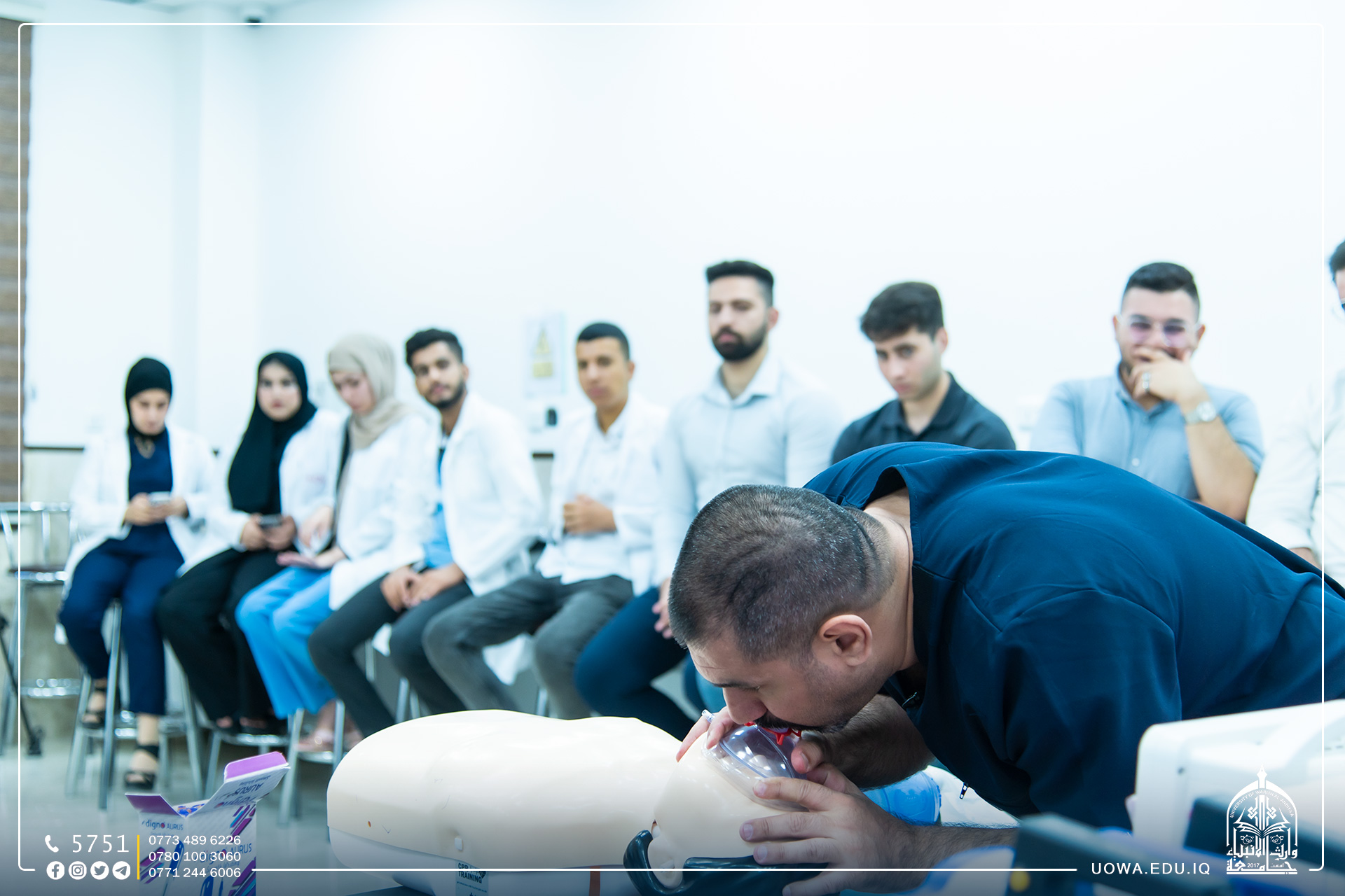التقطت عدسة اعلام جامعة وارث الأنبياء (عليه السلام) صورا لطلبة كلية الطب المتدربين عمليا على يد عدد من الأطباء والمتخصصين ضمن "الكورس التدريبي المكثف الاول".
