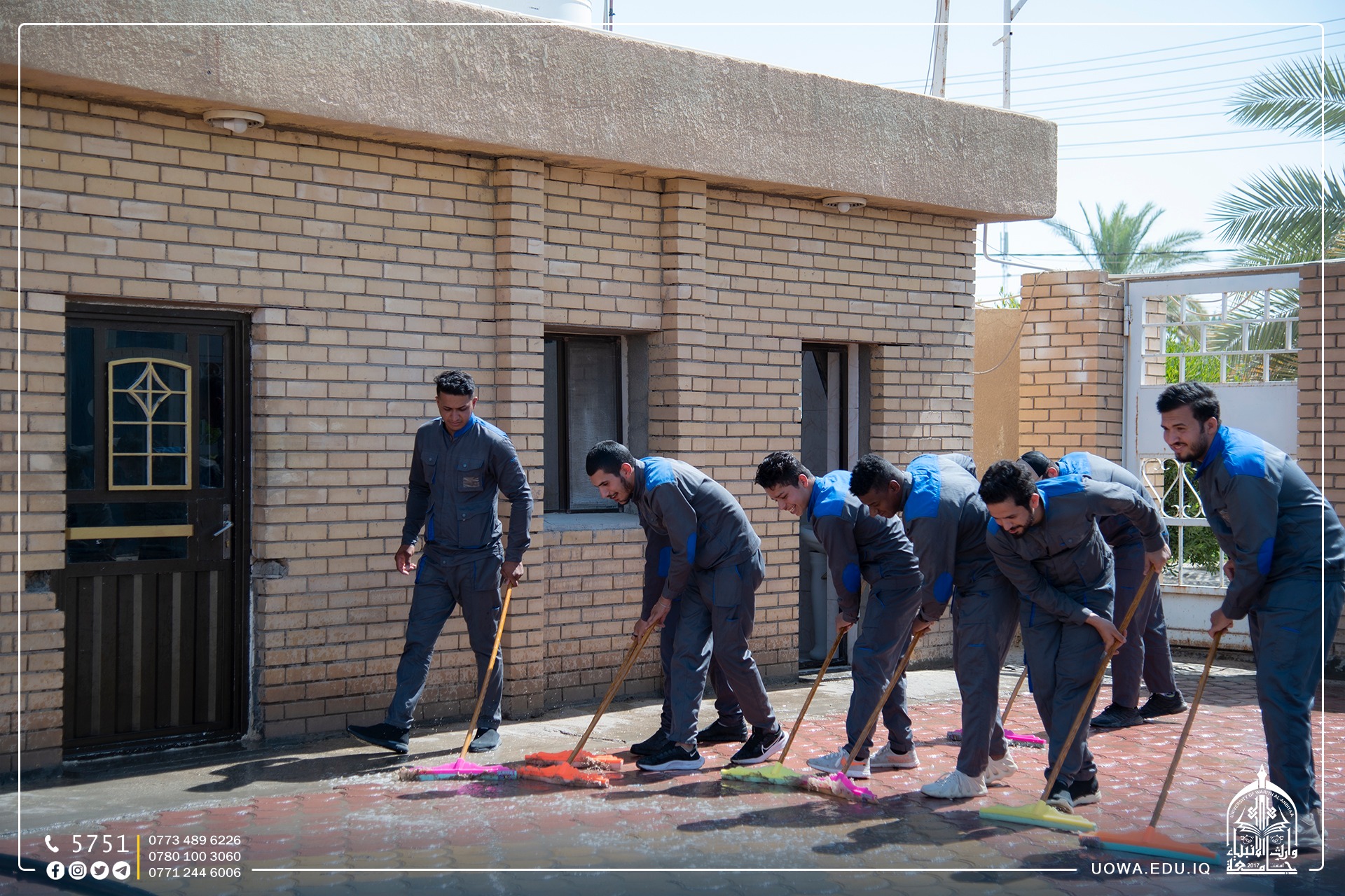 قسم رعاية الحرم في العتبة الحسينية المقدسة بكادره المتخصص يباشر بأعمال تهيئة مباني الجامعة وادامتها ضمن الاستعدادت للعام الدراسي الجديد.