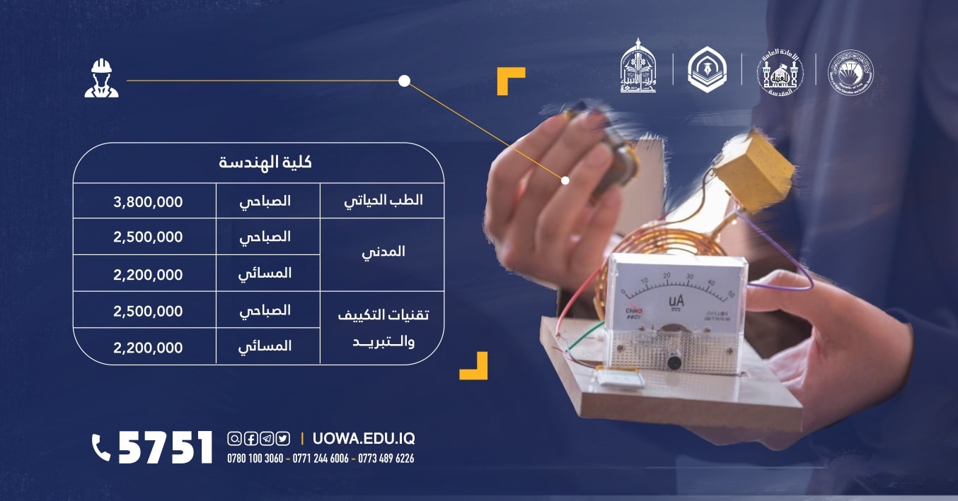 تعلن جامعة وارث الانبياء (عليه السلام) / كلية الهندسة / قسم هندسة تقنيات التكييف والتبريد