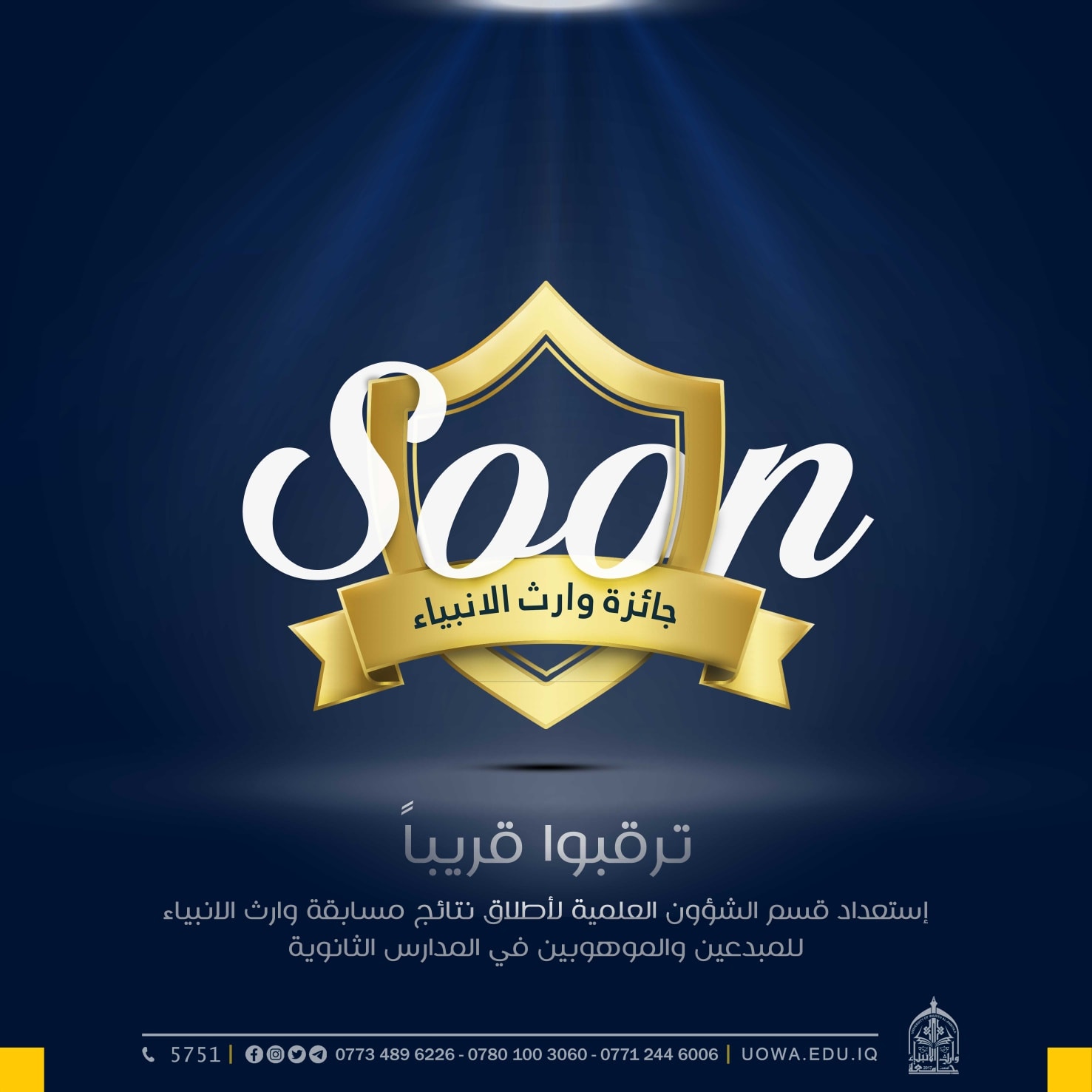 يستعد قسم الشؤون العلمية لاطلاق نتائج مسابقة وارث الانبياء للمبدعين والموهوبين في المدارس الثانوية
