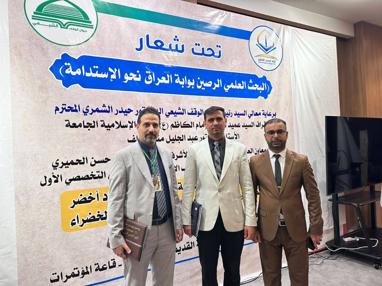 نشاط علمي شارك كل من الأستاذ المساعد الدكتور فهد مغيمش الشمري معاون العميد والاستاذ المساعد الدكتور هبة الله مصطفى السيد علي رئيس قسم المحاسبة والمدرس الدكتور محمد مجيد جواد رئيس قسم ادارة الاعمال والمدرس الدكتور حسين محمد علي كشكول مقرر قسم ادارة الاعمال في المؤتمر الدولي التخصصي الاول في كلية الامام الكاظم / اقسام النجف والذي عقد تحت شعار البحث العلمي الرصين بوابة العراق نحو الاستدامة بعدد من البحوث العلمية القَيّمة.