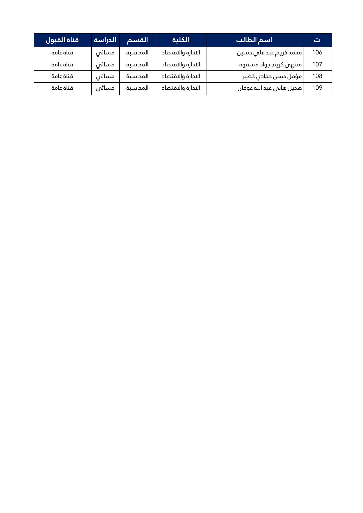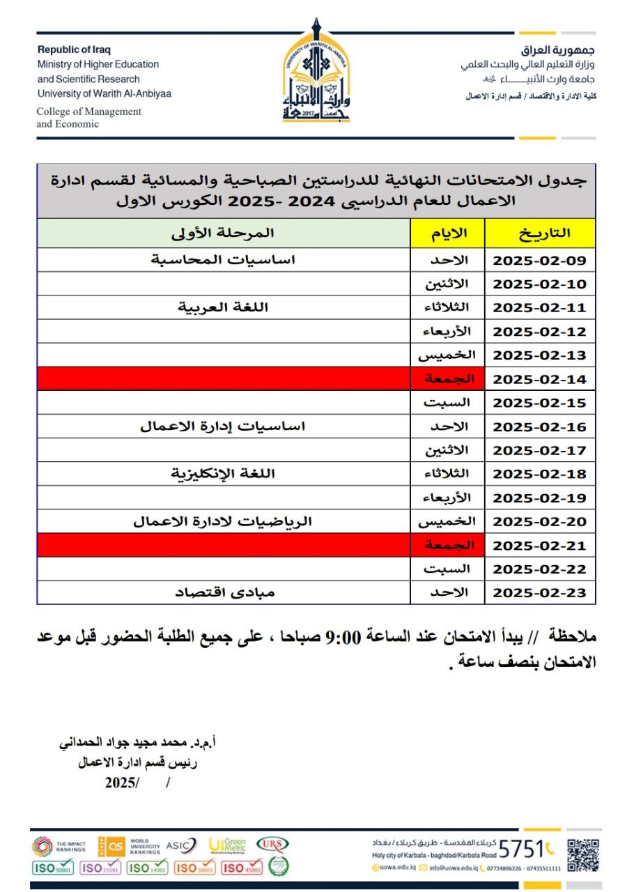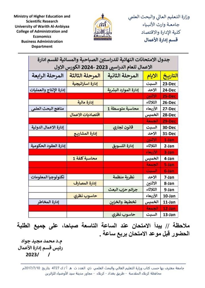 تتمنى كلية الادارة والاقتصاد لجميع طلبتها دوام التوفيق والنجاح في مسيرتهم الاكاديمية.