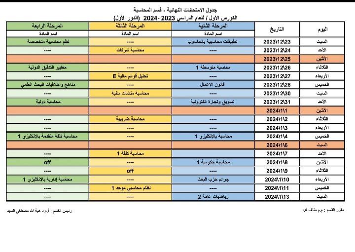المنهاج الوزاري الفصلي المعتمد لقسم المحاسبة 2017-2018