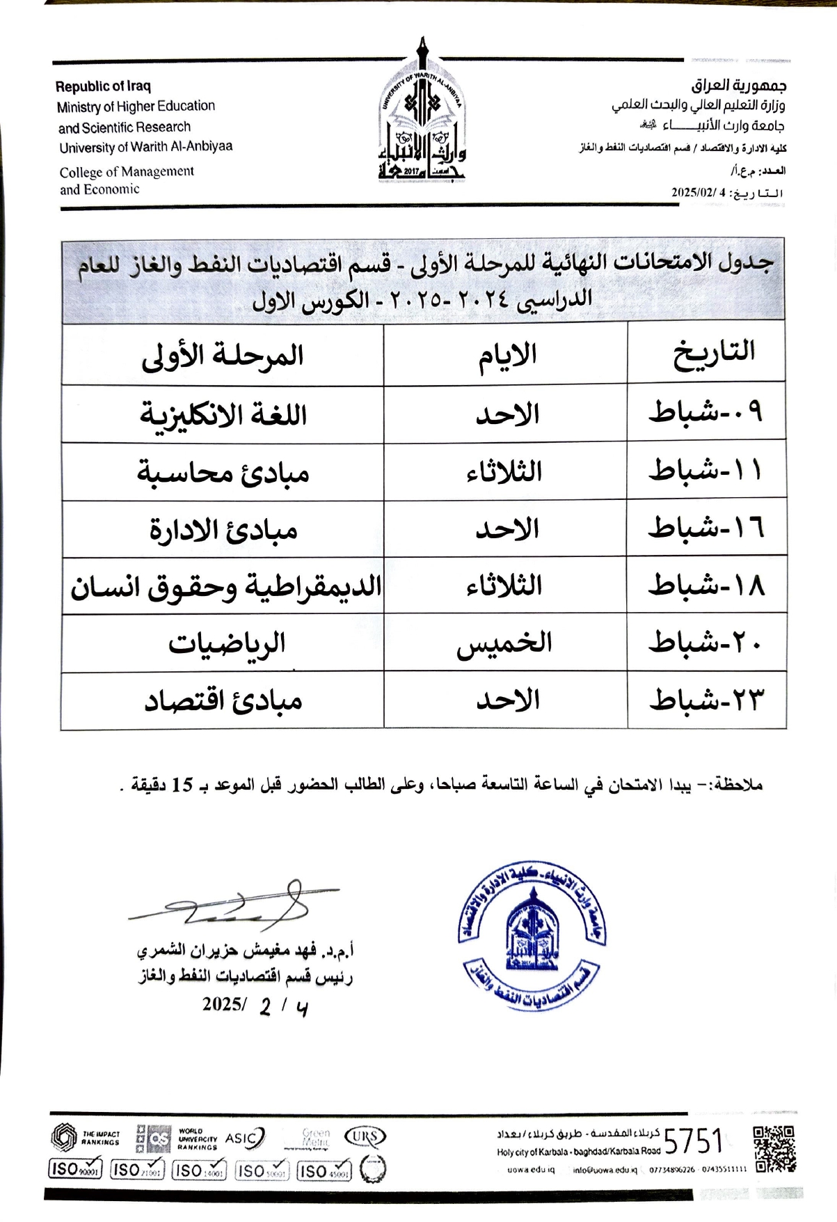2025/02/09قامت عمادة كلية الادارة والاقتصاد/ قسم المحاسبة في جامعة وارث الانبياء(عليه السلام)