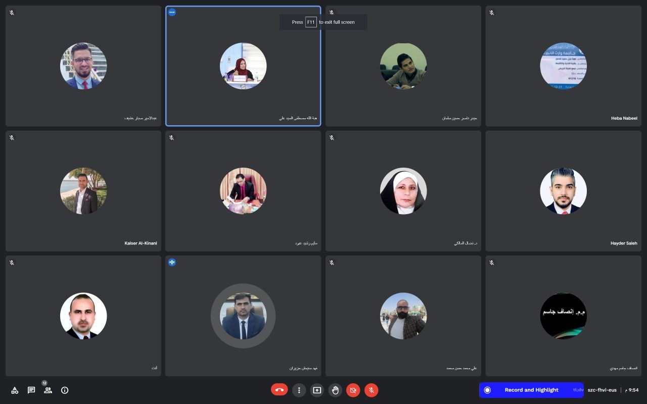 حاضر فيها :- ا. م.د معز حسن ابو طحين- مسؤول قسم ضمان الجودة-كلية الصفوة الجامعة - م.د. هبة الله مصطفى - رئيس قسم المحاسبة - جامعة وارث الانبياء-م.د.مروة عبد الستار جبار - مسؤول شعبة التعليم المستمر - كلية الصفوة الجامعة