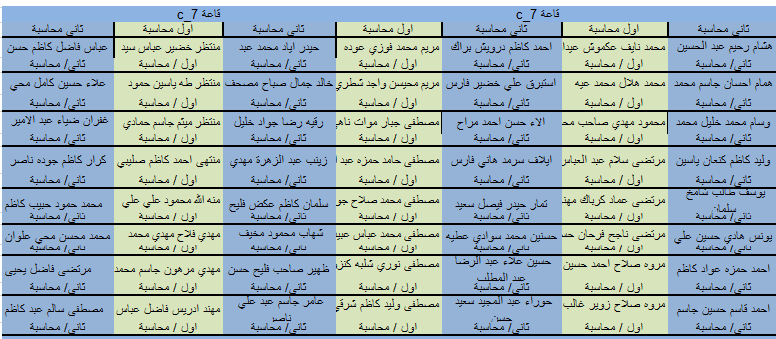 تقسيم الطلبة على القاعات للأمتحانات النهائية -الكورس الثاني