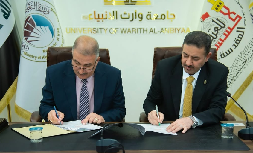 وفي الختام عبر السيد عميد الكلية عن سروره لتوقيع الإتفاقية مع كلية الادارة والاقتصاد جامعه وارث الانبياء لما له اثر في البحث العلمي وترصين العملية التعليمية .