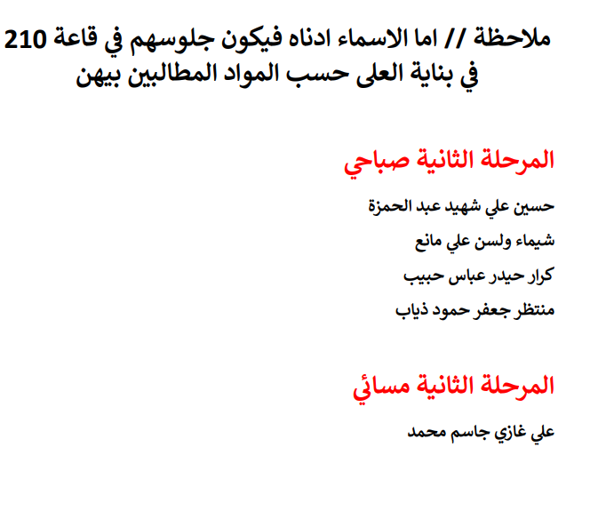 جدول توزيع طلبة قسم ادارة الاعمال على القاعات الامتحانية