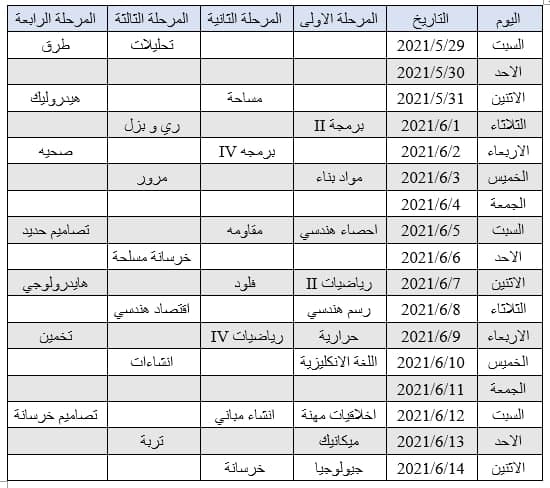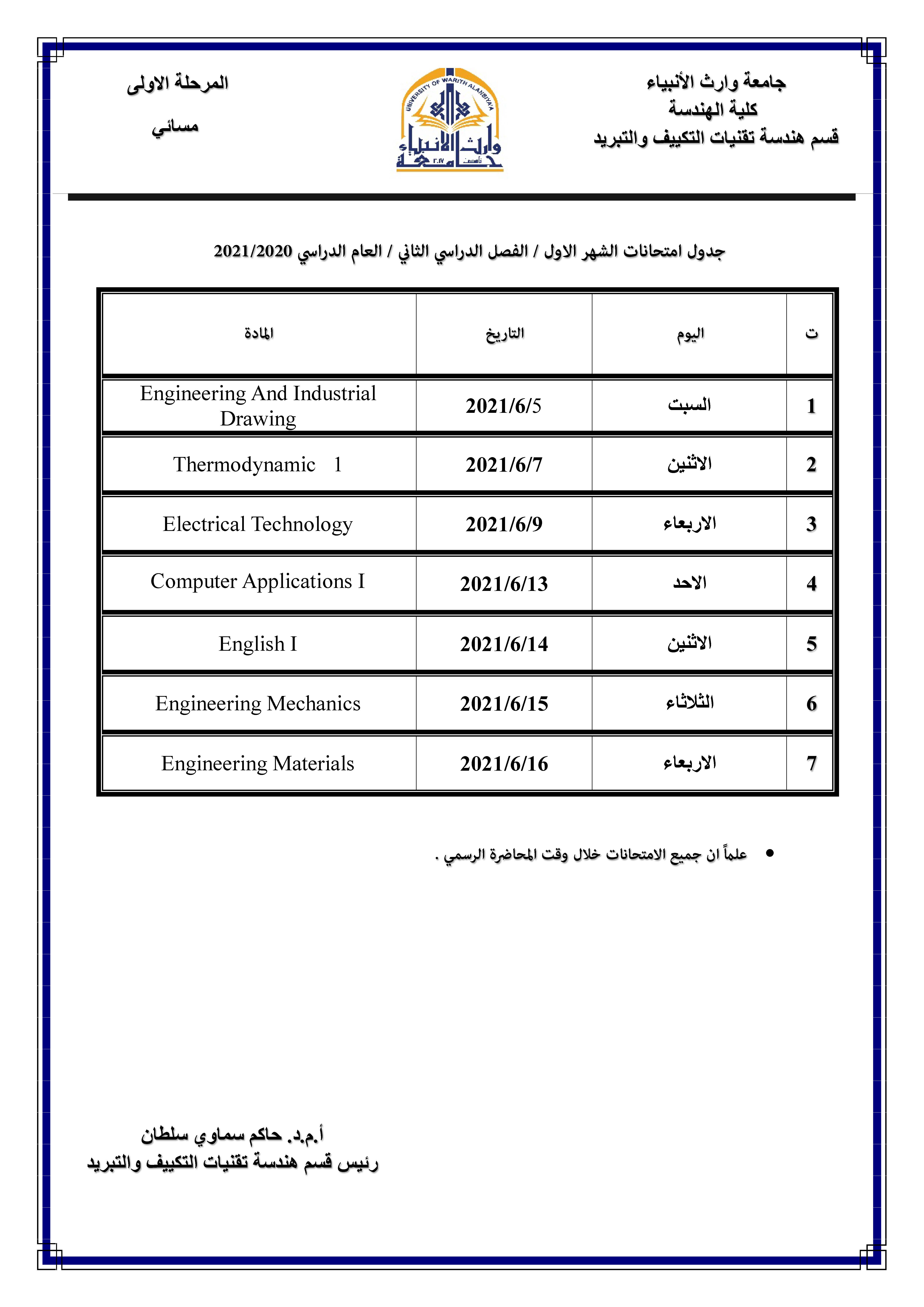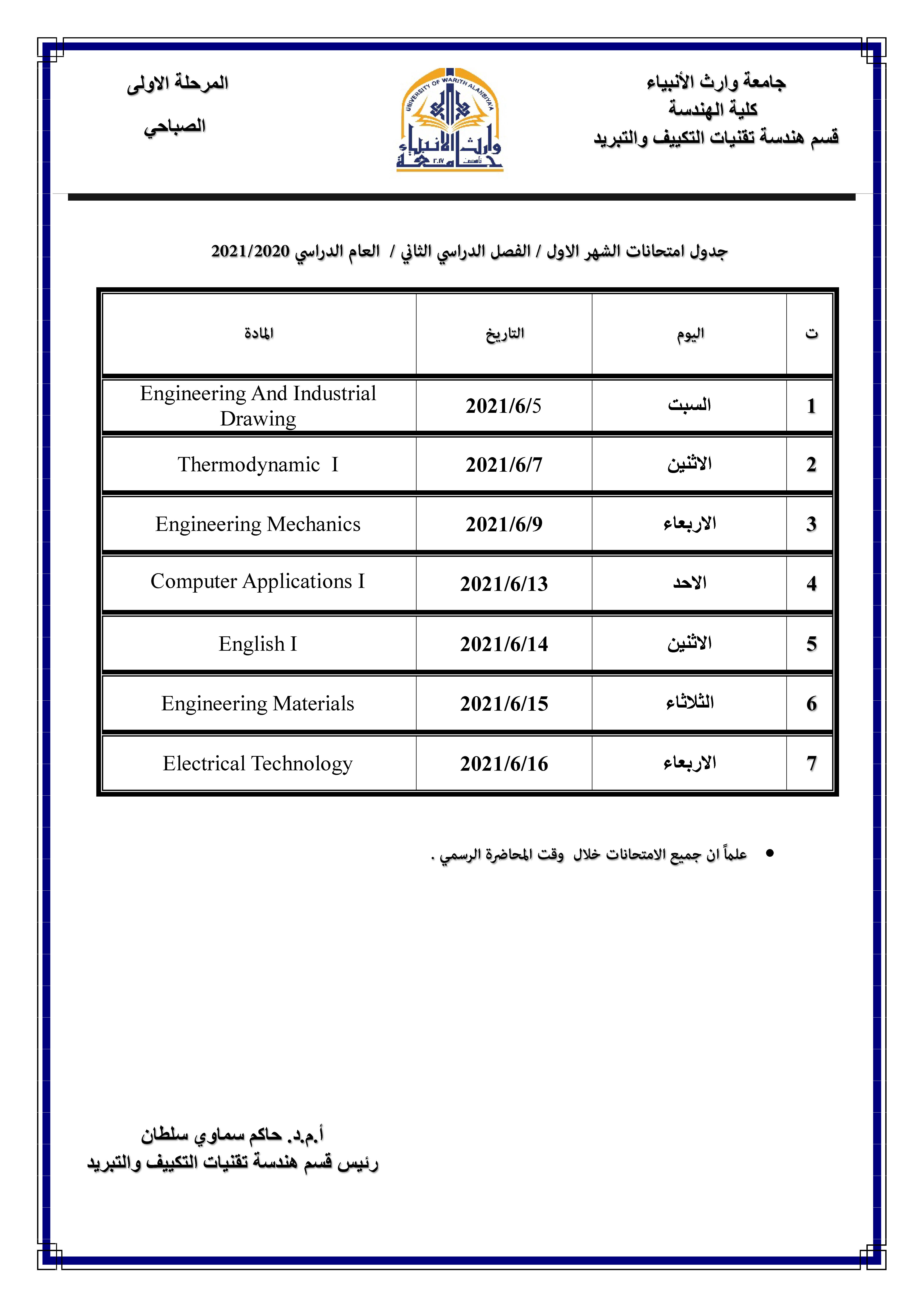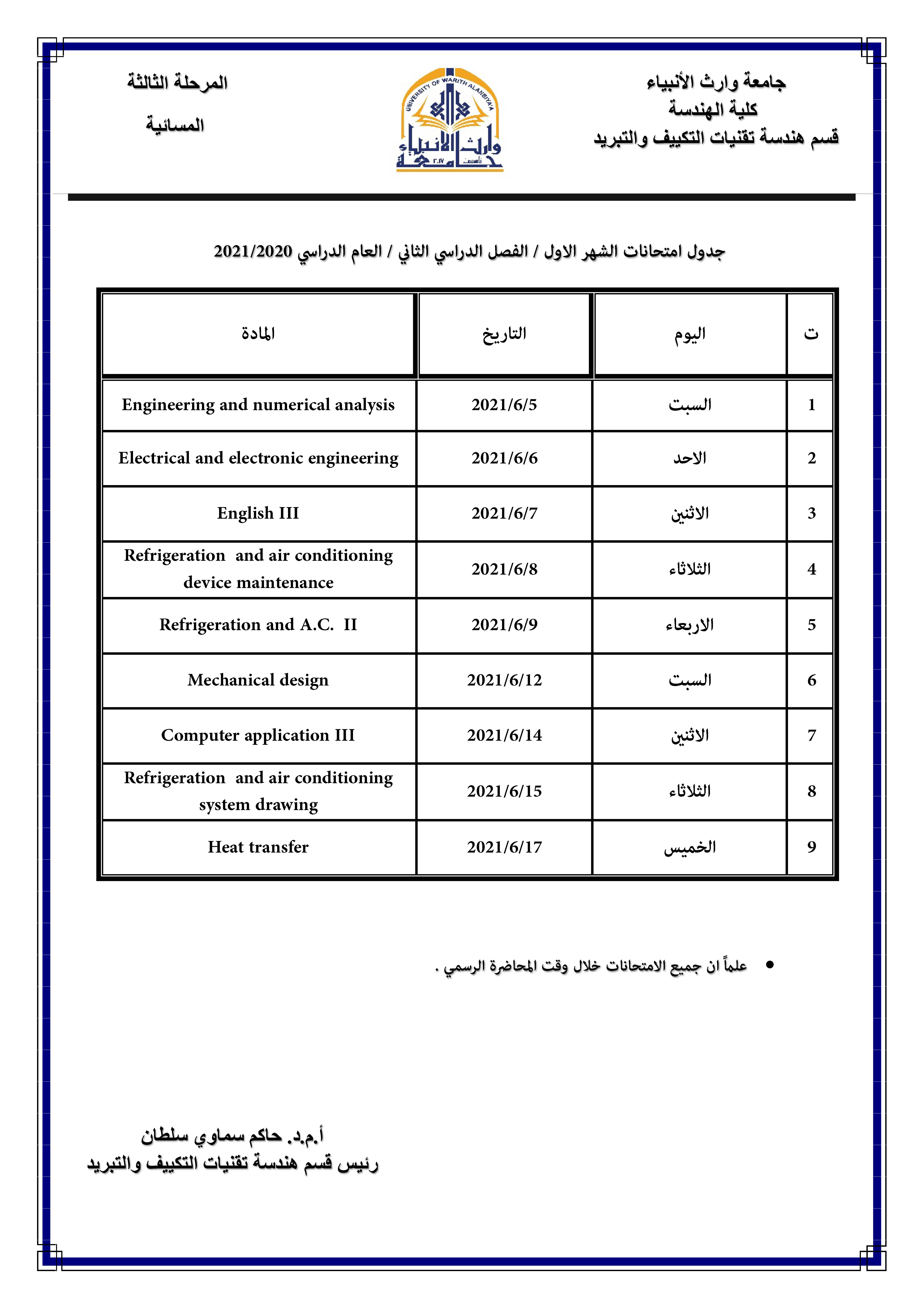 1. يكون امتحان جميع المراحل الساعة الثالثة مساءً وللدراستين الصباحية والمسائية.