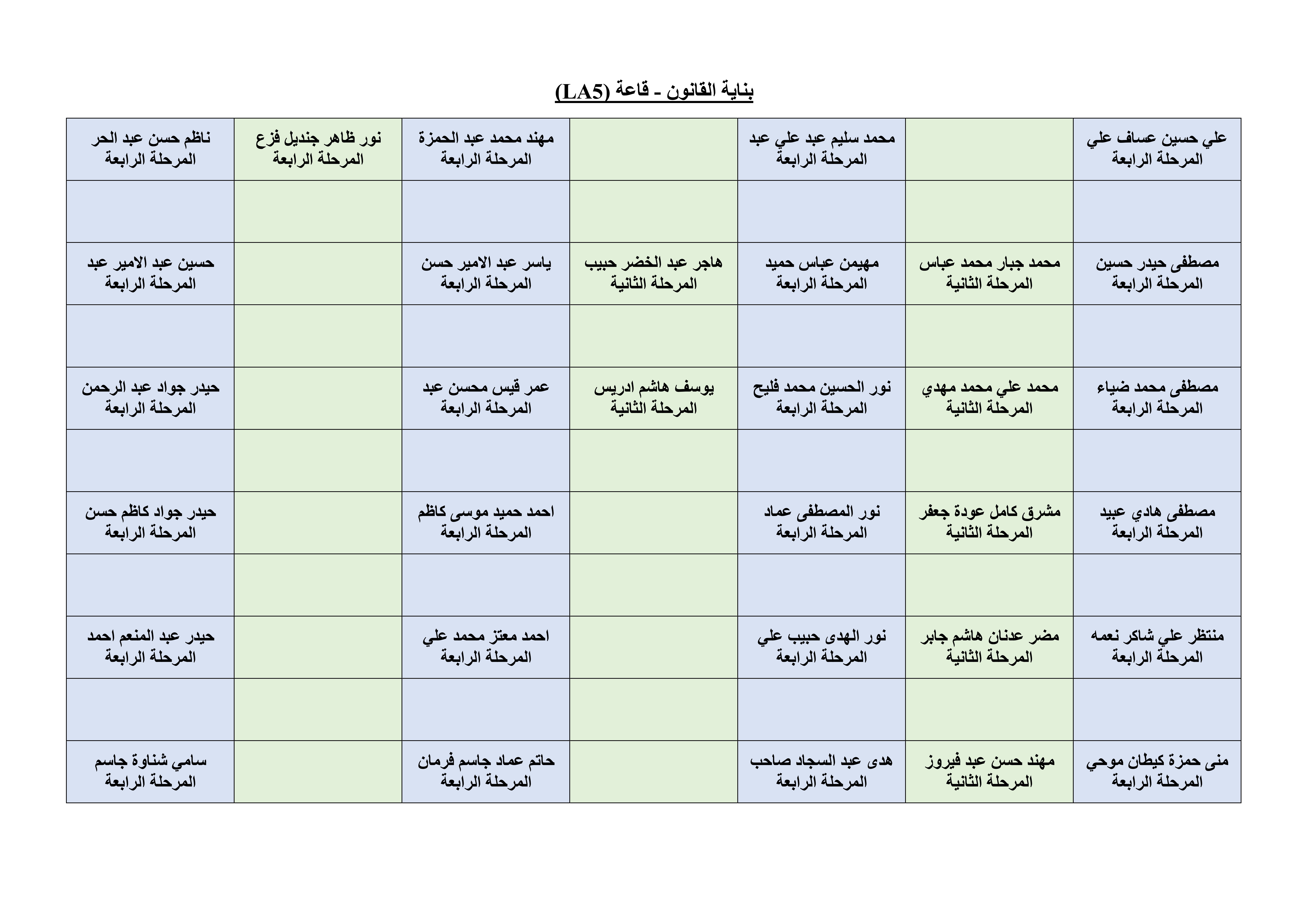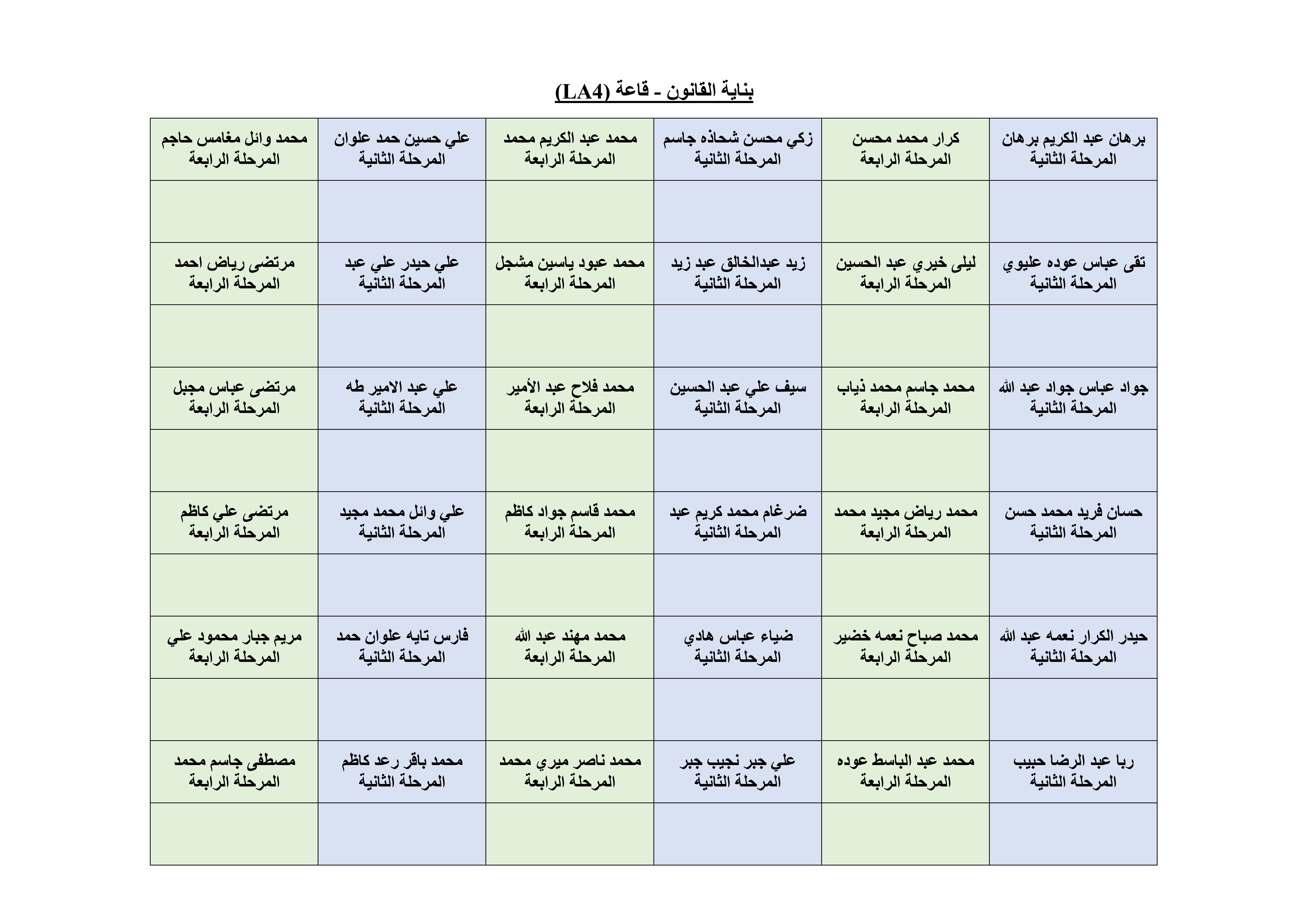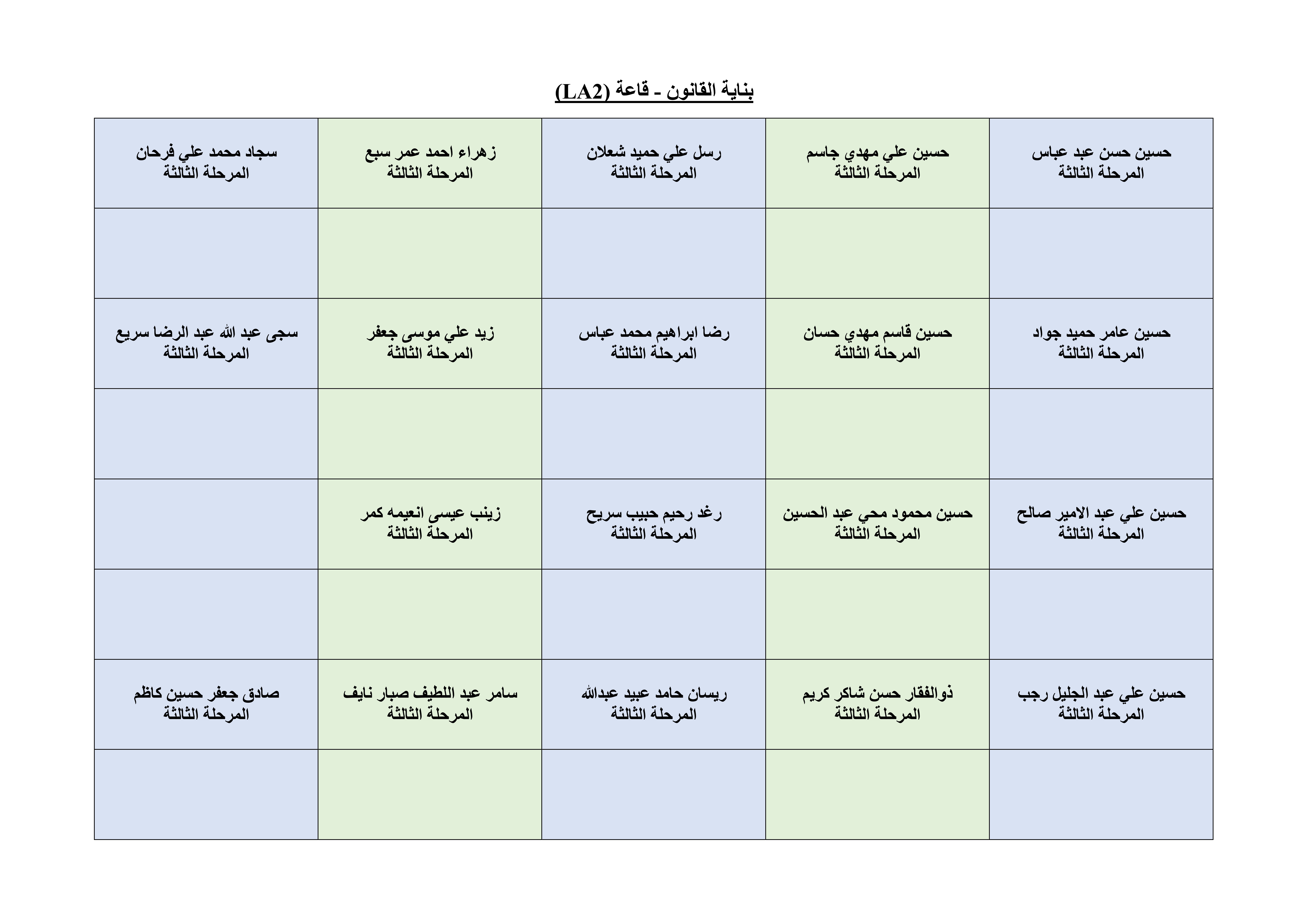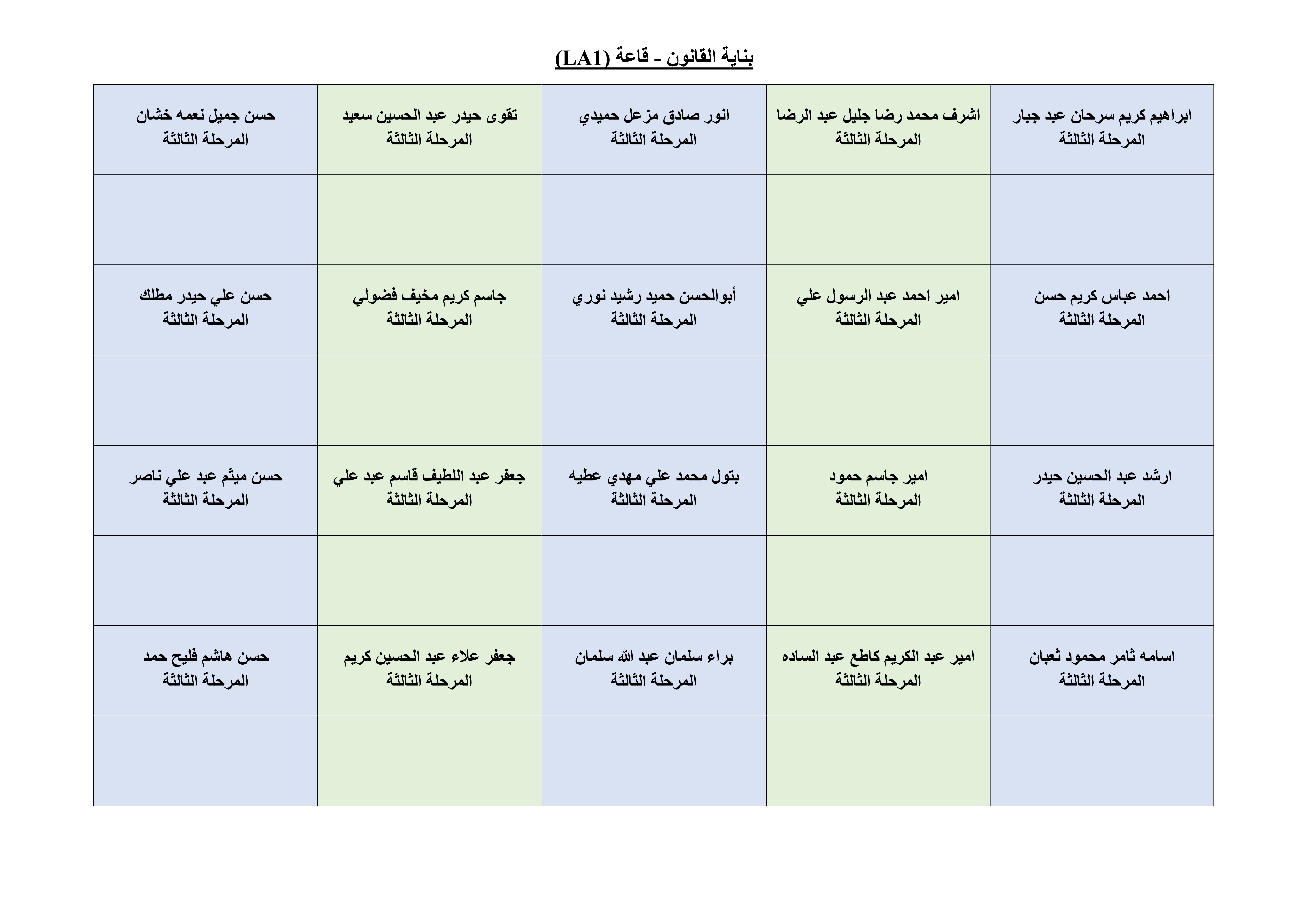 خارطة الجلوس لطلبة قسم الهندسة المدنية