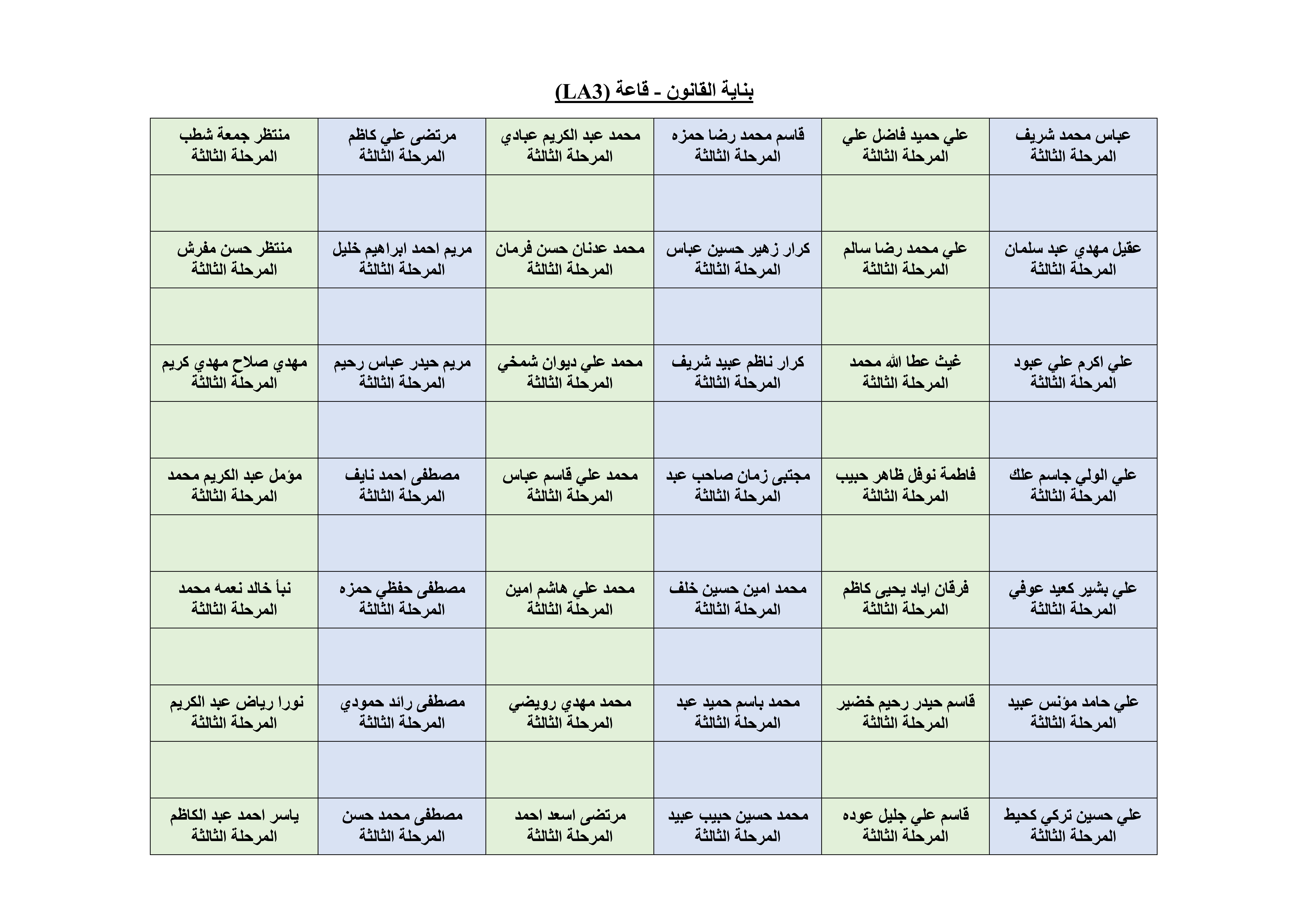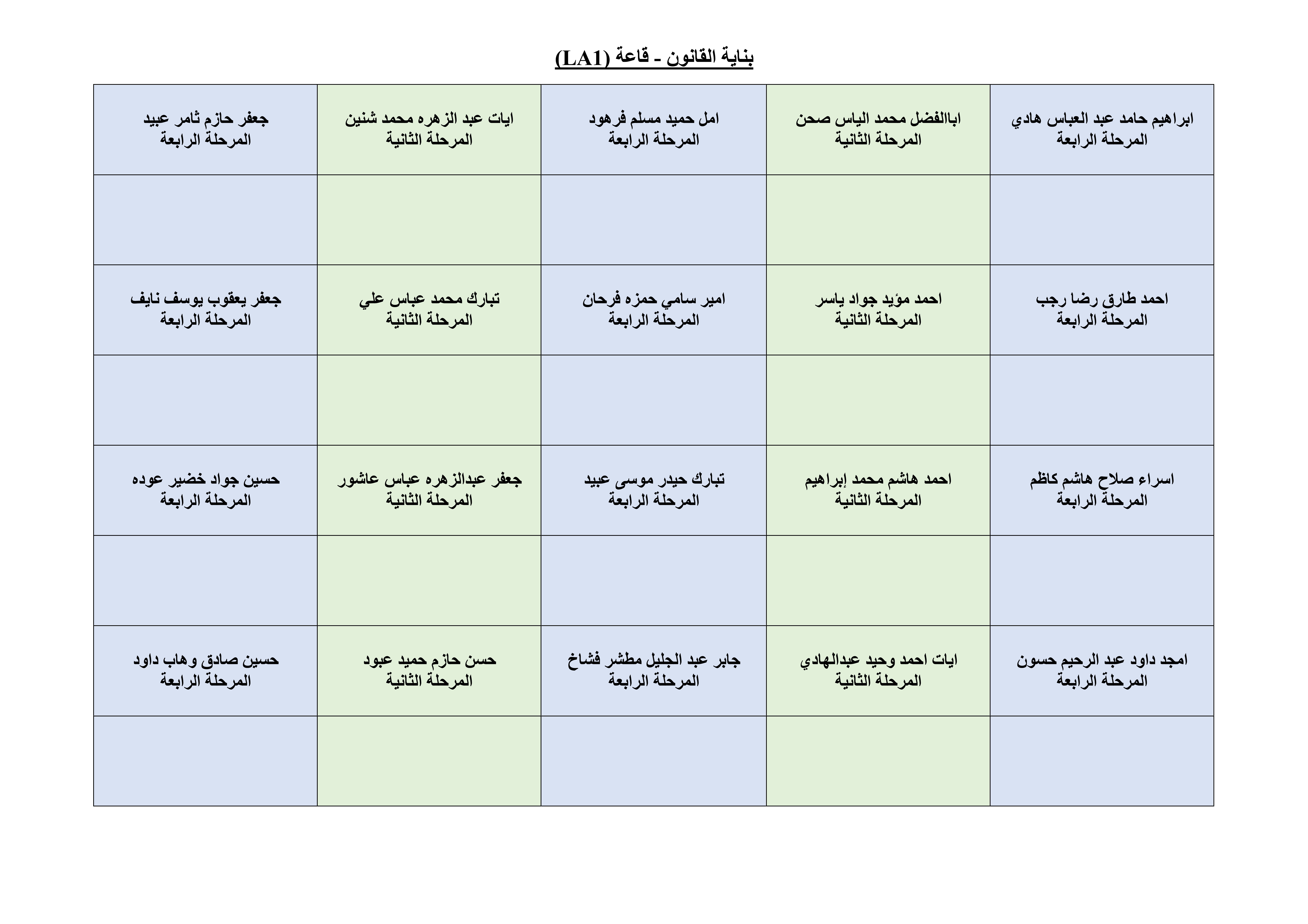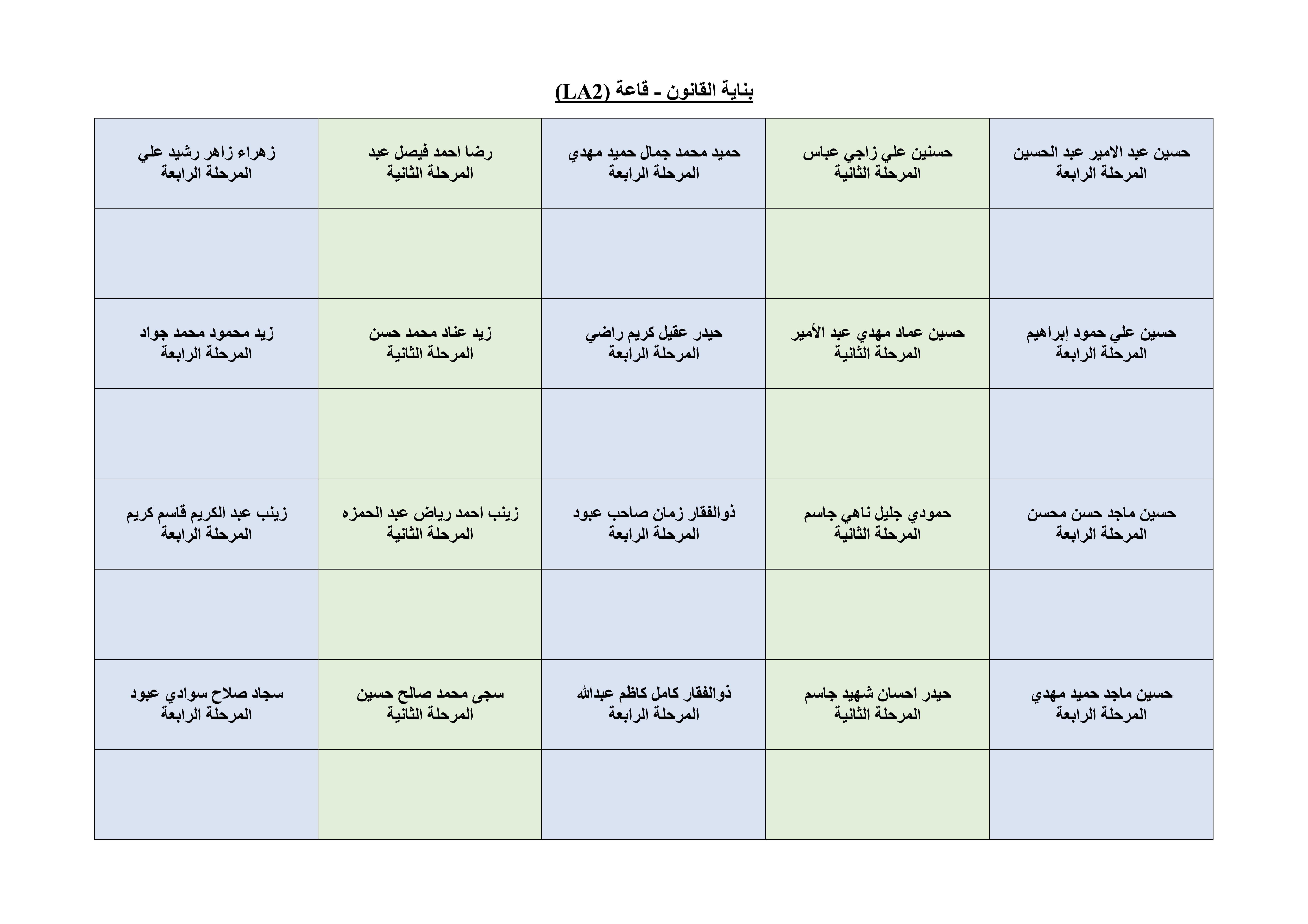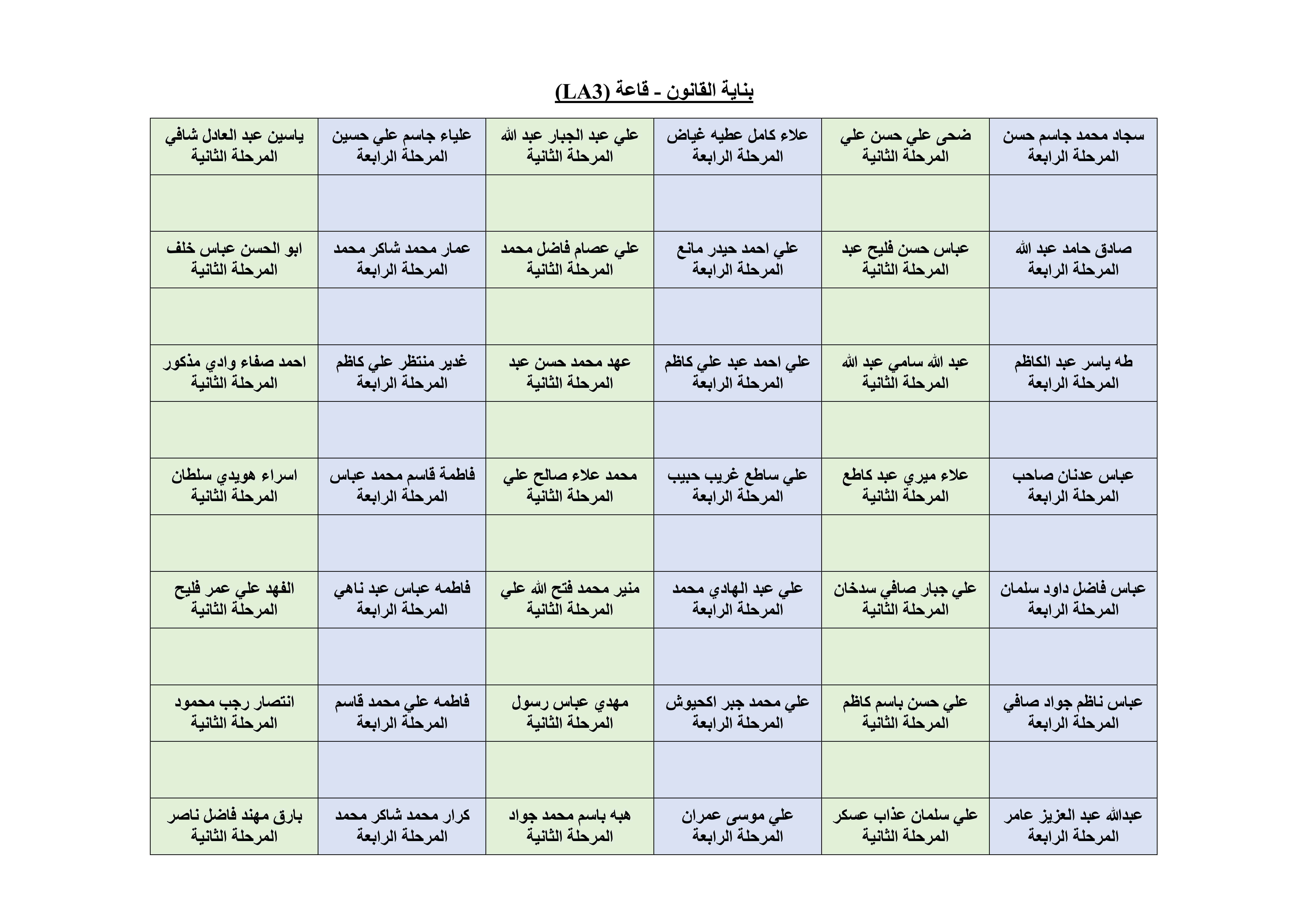 خارطة الجلوس لطلبة قسم الهندسة المدنية