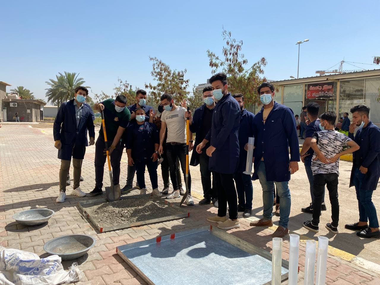 جانب من المحاضرة العملية مادة تكنولوجيا الخرسانة لطلبة المرحلة الثانية في قسم الهندسة المدنية