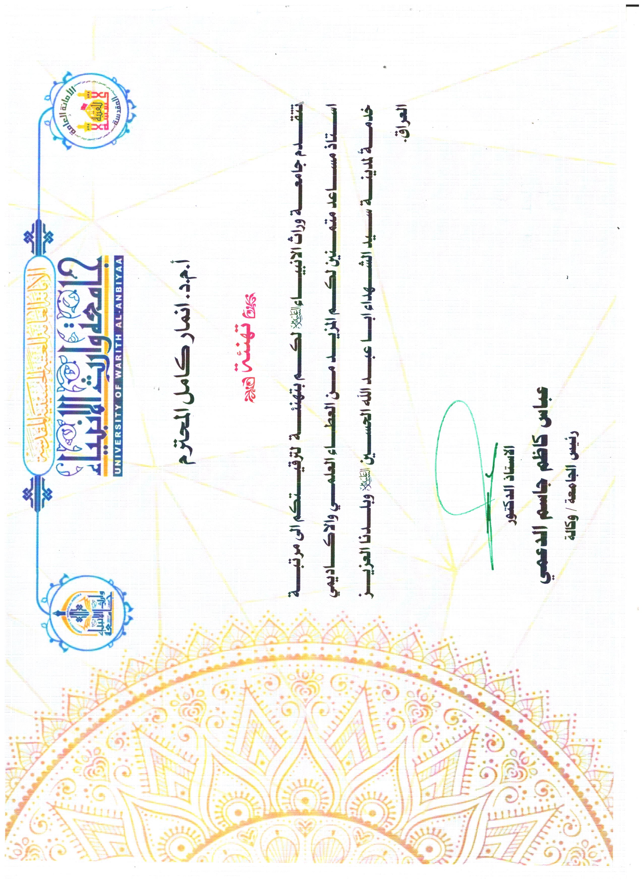 مشاركة تدريسية من كلية العلوم الإسلامية بجامعة وارث الأنبياء في تحكيم علمي بجامعة بابل
