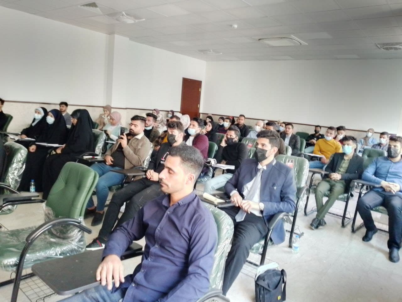 ندوة تفاعليه قدمها طلبة المرحلة الثالثة في قسم هندسة الطب الحياتي وتم احضار جهاز (Electrocardiography) الى القاعه الدراسية حيث وضح الطلبة ان القلب ينتج نشاطا كهربائي صغيرا ينتشر من خلال عضلة القلب ويسبب في حدوث انقباض ويمكن الكشف عن ذلك النشاط الكهربائي من خلال جهاز التخطيط الكهربائي وتحدثوا أيضا عن الأعطال الشائعه التي ممكن ان تحدث بالجهاز وكانت الندوة بحضور رئيس القسم واستاذ المادة و بعض من تدريسيي القسم.
