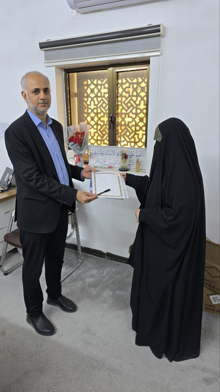 رئاسة جامعة وارث الأنبياء تكرم الدكتورة نور الساعدي كرمت رئاسة جامعة وارث الأنبياء متمثلةً برئيسها الدكتور ابراهيم الحياوي التدريسية في كلية العلوم الإسلامية الدكتور الأستاذ نور الساعدي و ذلك بمناسبة حصولها على مرتبة الأستاذية، تقديراً لجهودها العلمية. مؤكدة حرصها على دعم الكفاءات العلمية وتعزيز دورها في تطوير المسيرة التعليمية، مشيدة بالعطاء الذي يقدمه الأساتذة في خدمة الطلبة والمجتمع.