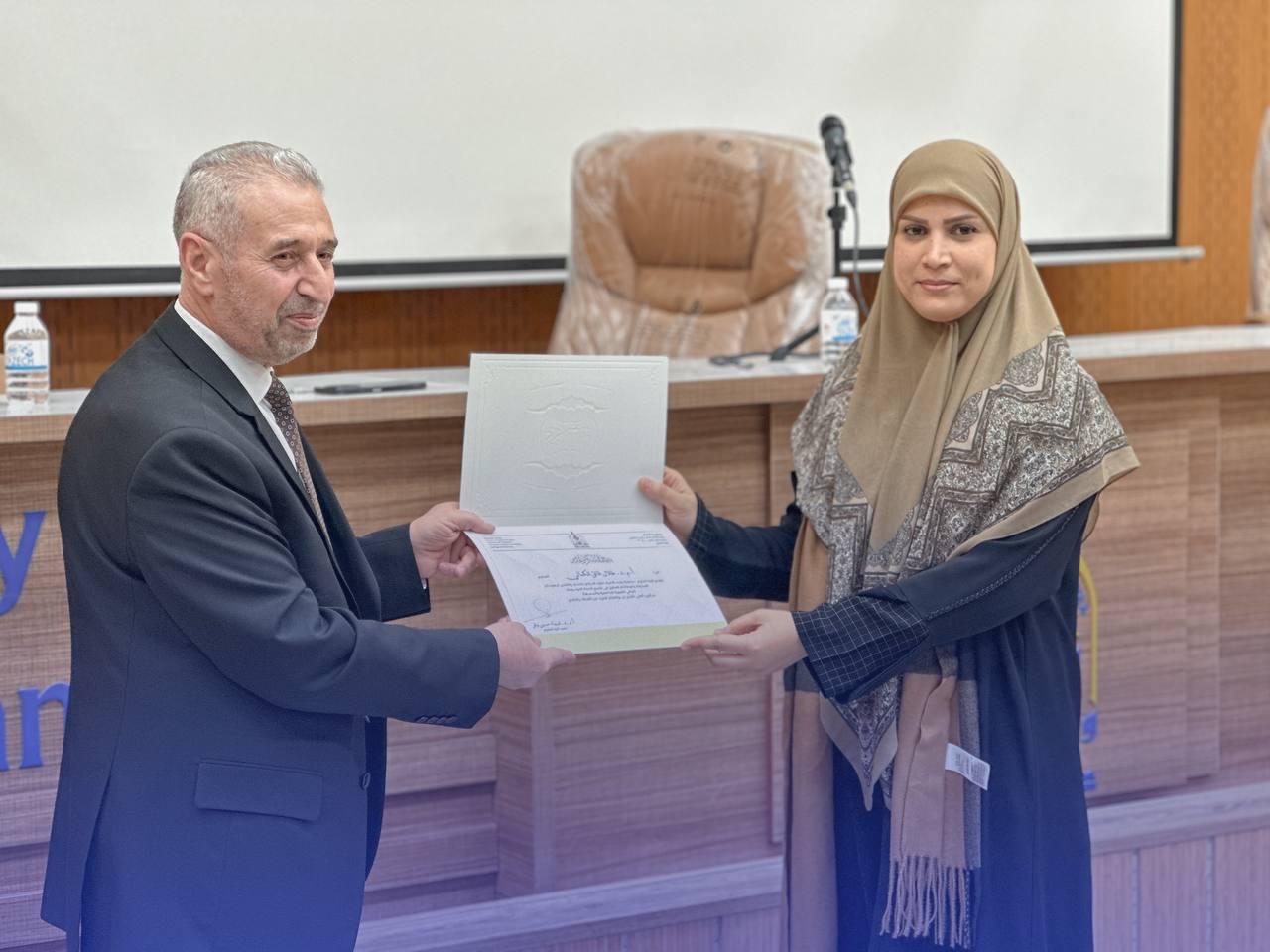 2024/12/30مشاركة أ.م.د نور مهدي كاظم في لجنة مناقشة رسالة ماجستير بجامعة بابل شاركت الأستاذ المساعد الدكتور نور مهدي كاظم، التدريسية في كلية العلوم الإسلامية بجامعة وارث الأنبياء (عليه السلام)، ضمن لجنة مناقشة رسالة الماجستير التي قدّمها الطالب قيس علي سمير بعنوان "الفتح في القرآن الكريم، دراسة موضوعية"، والتي أُقيمت يوم الأحد الموافق 8/12/2024 في كلية العلوم الإسلامية بجامعة بابل. وخلال المناقشة، أثنت اللجنة على الجهد العلمي المبذول في الرسالة التي تناولت موضوعًا مهمًا في الدراسات القرآنية. وقد أسهمت أ.م.د نور مهدي كاظم بملاحظاتها العلمية القيّمة التي أضافت للرسالة عمقًا أكاديميًا. تُعد هذه المشاركة جزءًا من النشاطات الأكاديمية المميزة التي تحرص من خلالها كلية العلوم الإسلامية بجامعة وارث الأنبياء على التفاعل مع الجامعات الأخرى، بما يعزز التعاون العلمي ويثري البحوث الأكاديمية في مجال الدراسات الإسلامية.