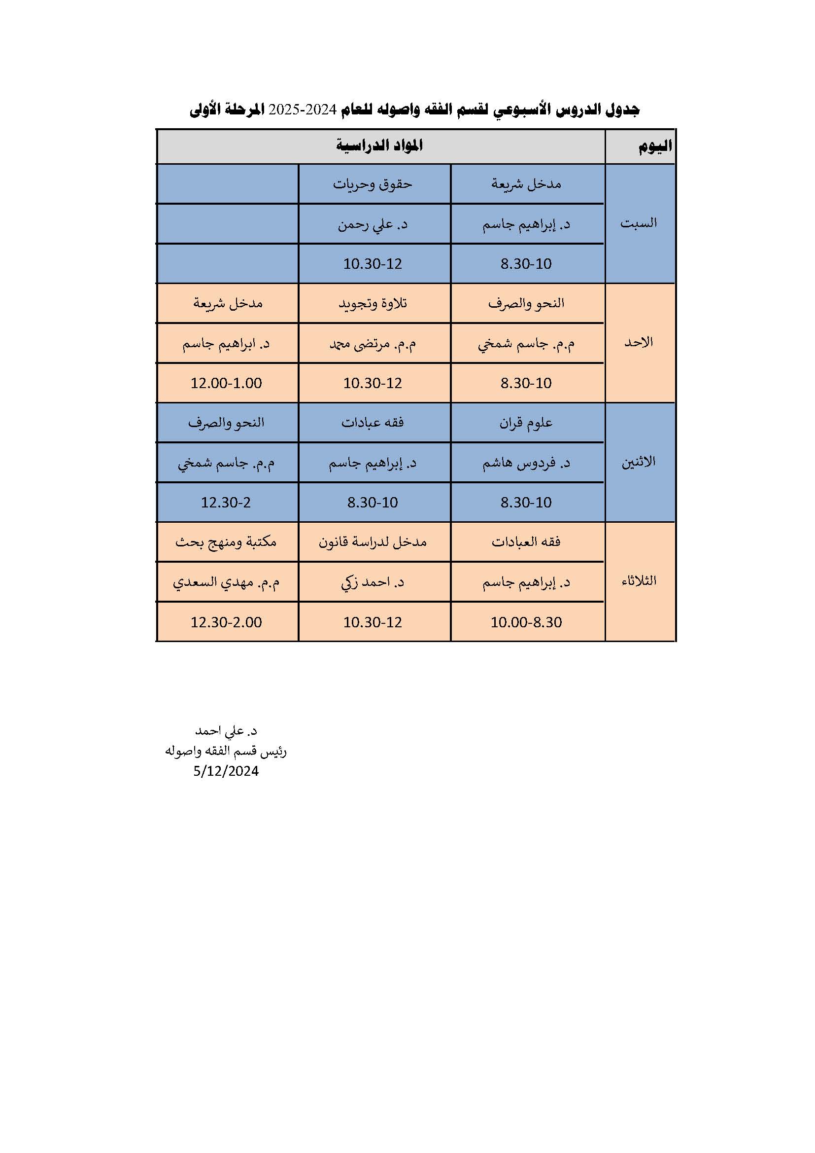 أسماء الطلبة المقبولين في كلية العلوم الإسلامية قسم الفقه وأصوله للعام 2024-2025