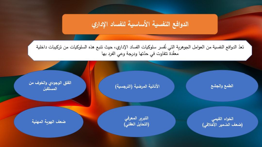 قدّمها الأستاذ أسعد النصراوي، التدريسي في كلية العلوم الإسلامية، في طرح يُعد من أبرز المقاربات النفسية الحديثة للفساد، يستحق أن يُدرج ضمن أولويات الهيئات الدولية المعنية بالحوكمة،