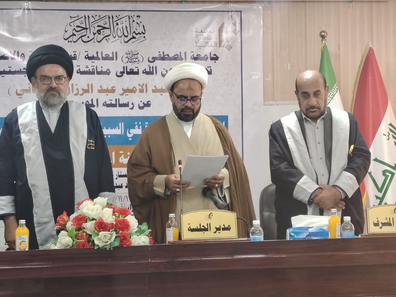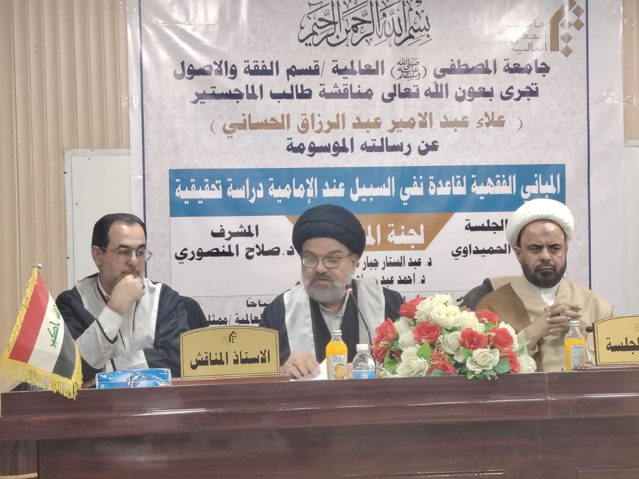 مشاركة الدكتور عبد الستار الجابري في مناقشة رسالة ماجستير بجامعة المصطفى العالمية – بغداد