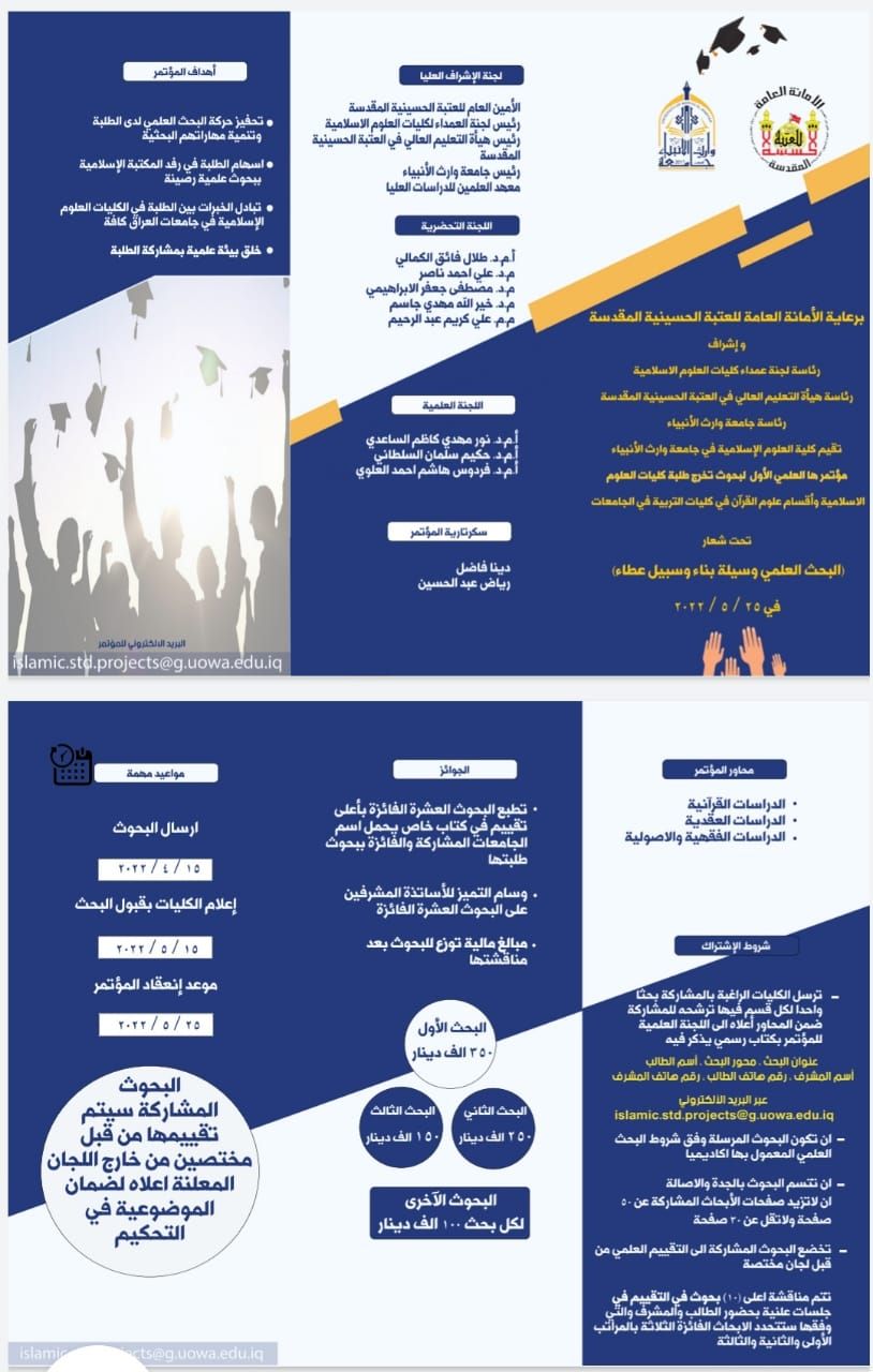 مؤتمر علمي لبحوث تخرج طلبة كليات العلوم الإسلامية واقسام علوم القرآن في كليات التربية في الجامعات