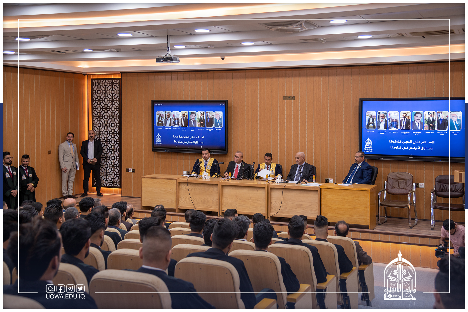 برعاية رئيس الجامعة أ.د إبراهيم الحياوي وبإشراف عميد الكلية أ.م.د علي الشريفي أقامت كلية القانون ندوة حوارية تحت عنوان (مهنة المحاماة بين الواقع والمأمول) قدمها نقيب المحامين العراقيين المحامي الدكتور محمد صالح المهنا.