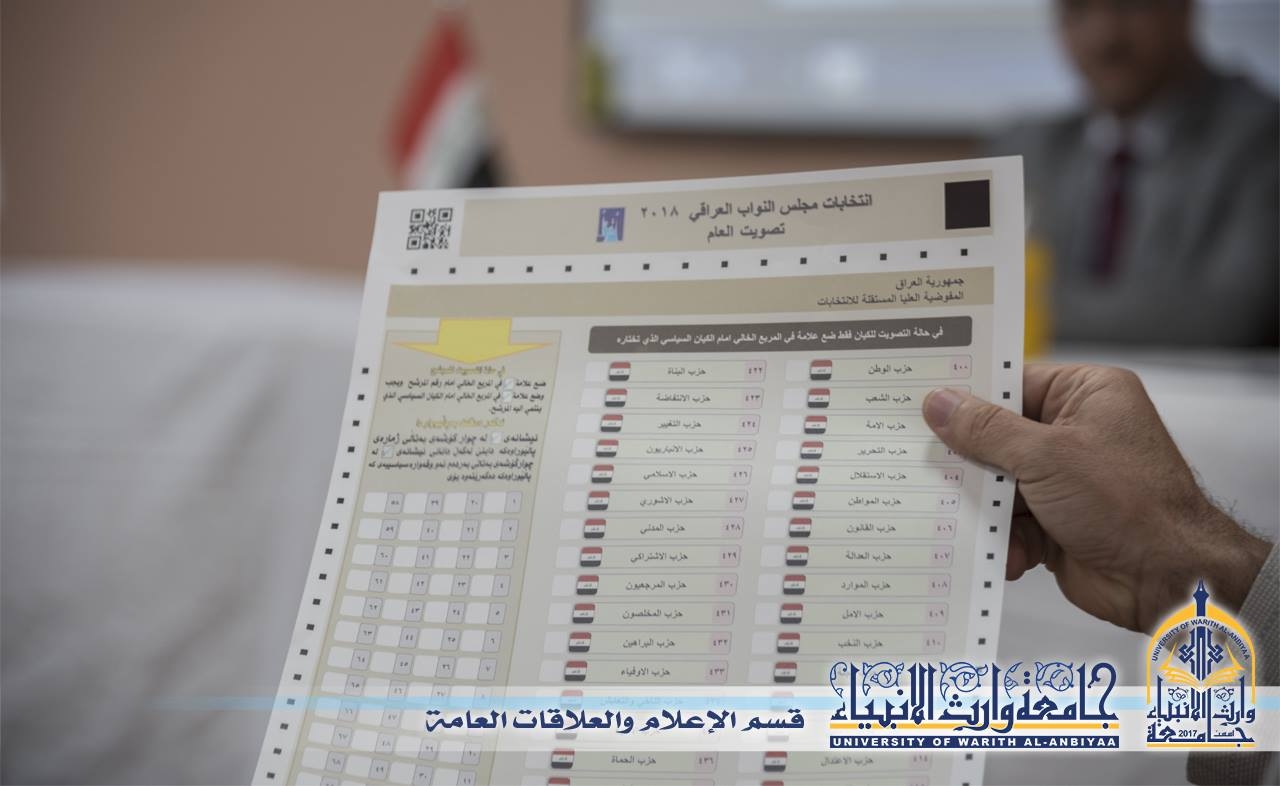 انطلاقا من مبدأ ( لكل صوت قيمة في الانتخابات) أقامت كلية القانون في جامعة وارث الانبياء حلقة نقاشية حول الانظمة الانتخابية حيث بين أ.م .د عميد كلية القانون عدنان الشروفي أن الغرض من اقامة الحلقة هو اشاعة التوعية حول الانظمة الانتخابية التي يعمل بها العراق حاليا وسلبيات وايجابيات يترتب عليها النظام المتبع وتعتبر زيادة الوعي العام بالعملية الانتخابية عاملا اساسياً في زيادة نسبة المشاركة في الحياة السياسية بشكل عام والعمليات الانتخابية بشكل خاص, وأضاف مديرمكتب المفوضية العليا للانتخابات في كربلاء المقدسة الاستاذ كاظم الاسدي أن الية اجراء الاقتراع بالجهاز الحديث هو للحد من ظاهرة التزوير والتلاعب بالنتائج حيث تُعتبَرالتوعية أمراً أساسياً لضمان ممارسة الناخبين لحقوقهم وتعبيرهم عن إرادتهم بفعالية وثقة من خلال العملية الانتخابية.