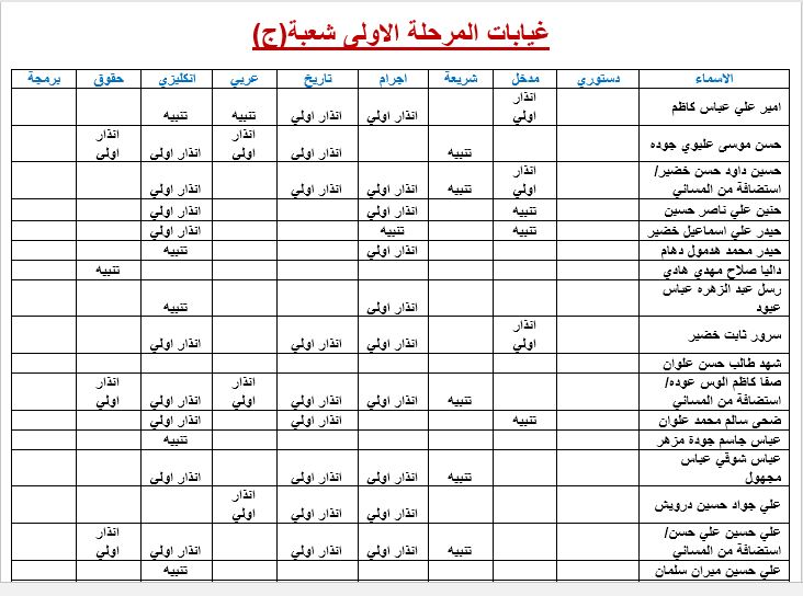 غيابات المرحلة الاولى شعبة(ج)