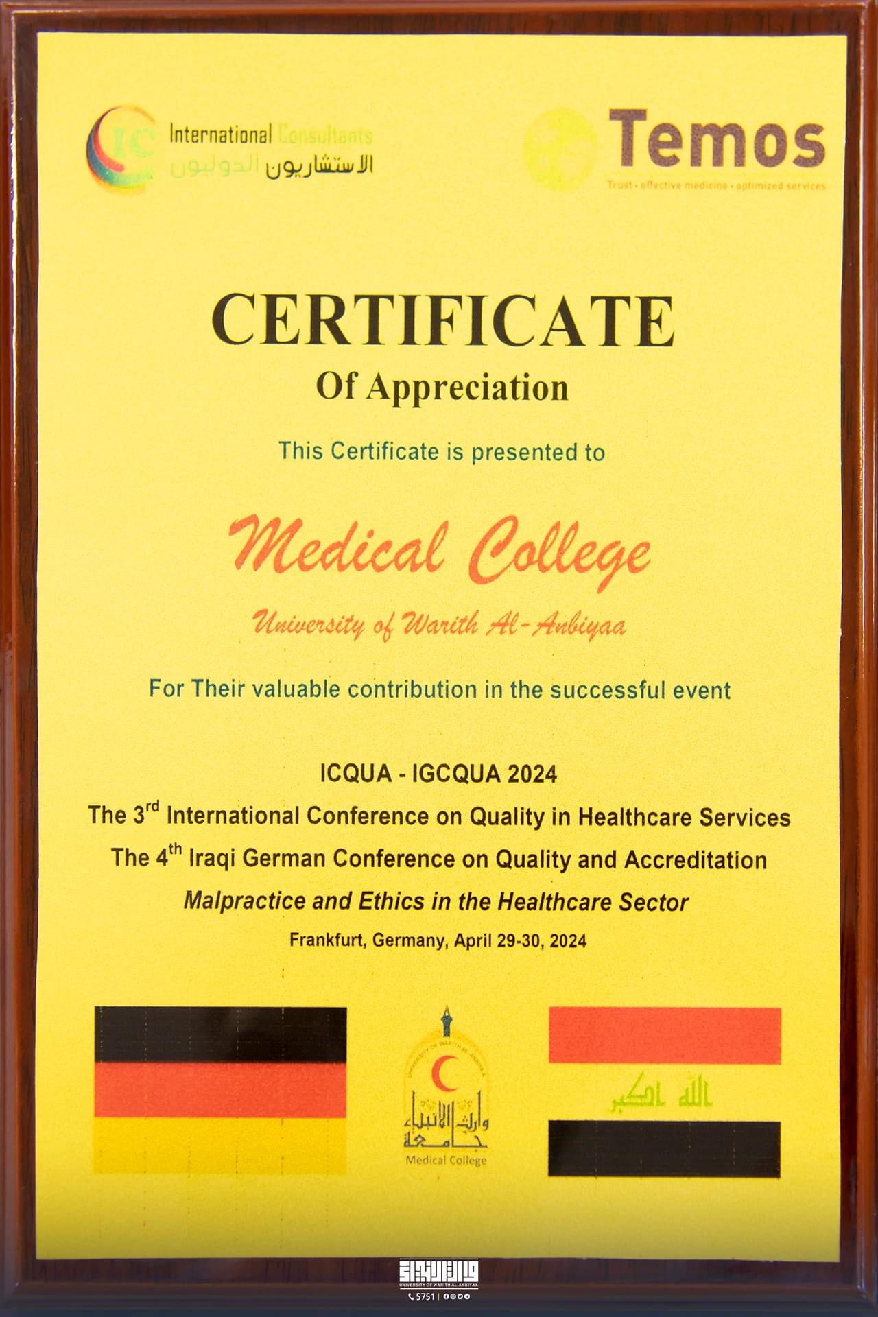 وجاءت هذه الزيارة لتقديم درع المشاركة لجامعتنا وذلك لدخولها كمشارك في المؤتمر العراقي الالماني لعام ٢٠٢٤ في فرانكفوت.