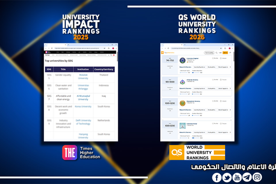 حيث سجلت عشر جامعات عراقية مراتب مهمة في تصنيف (QS World University Rankings 2026) الذي تنافست فيه أكثر من ألف وخمسمئة جامعة حول العالم، إذ جاءت جامعة بغداد في المرتبة (741-750) وجامعة النهرين (951-1000) وجامعتا المستنصرية والأنبار (1001-1200)، وجامعات تيشك وبابل والبصرة وكربلاء والكوفة والموصل (1201-1400).