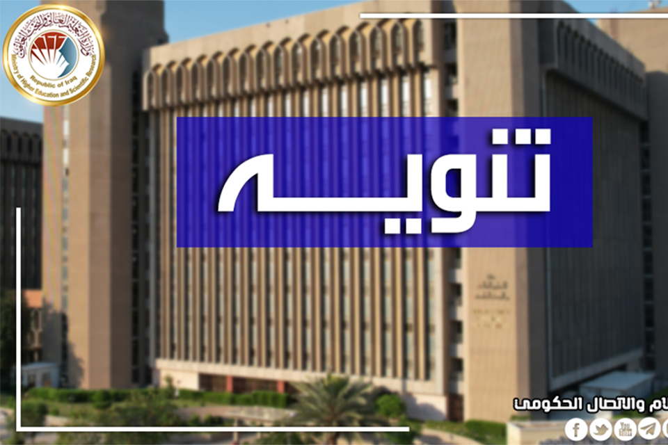 تلفت وزارة التعليم العالي والبحث العلمي عناية المهتمين من المعينين الجدد بموجب الأمر الإداري (2617) في 3/6/2025، إلى إطلاق خدمة تسجيل الاعتراضات الإلكترونية بشأن التوزيع واستمرارها إلى غاية انتهاء الدوام الرسمي من يوم الخميس الموافق 2025/7/3.