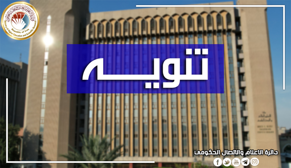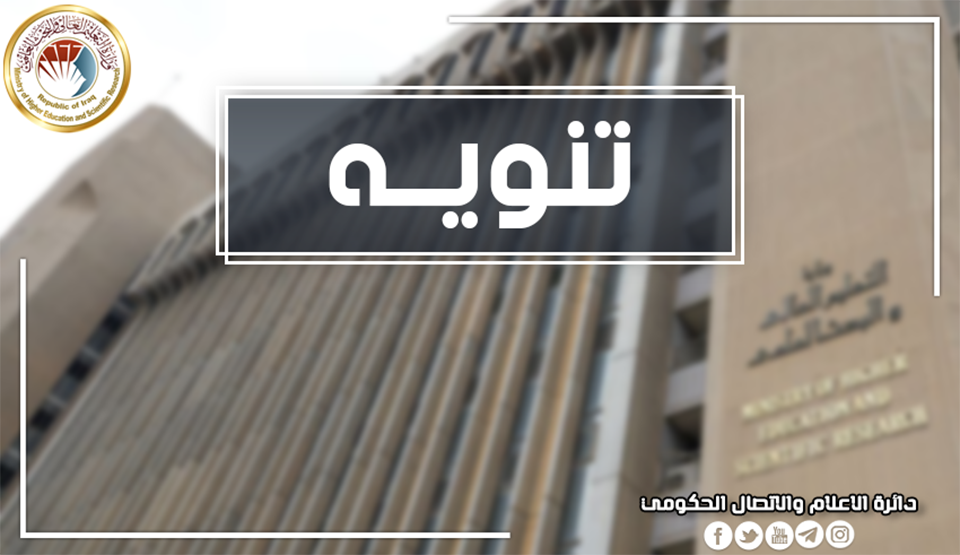 لمقتضيات تنظيمية تنوه وزارة التعليم العالي والبحث العلمي إلى إيقاف التقديم إلى المنظومة الإلكترونية لدائرة البعثات والعلاقات الثقافية، وسيتم استئناف العمل يوم الخميس الموافق 2025/5/22.