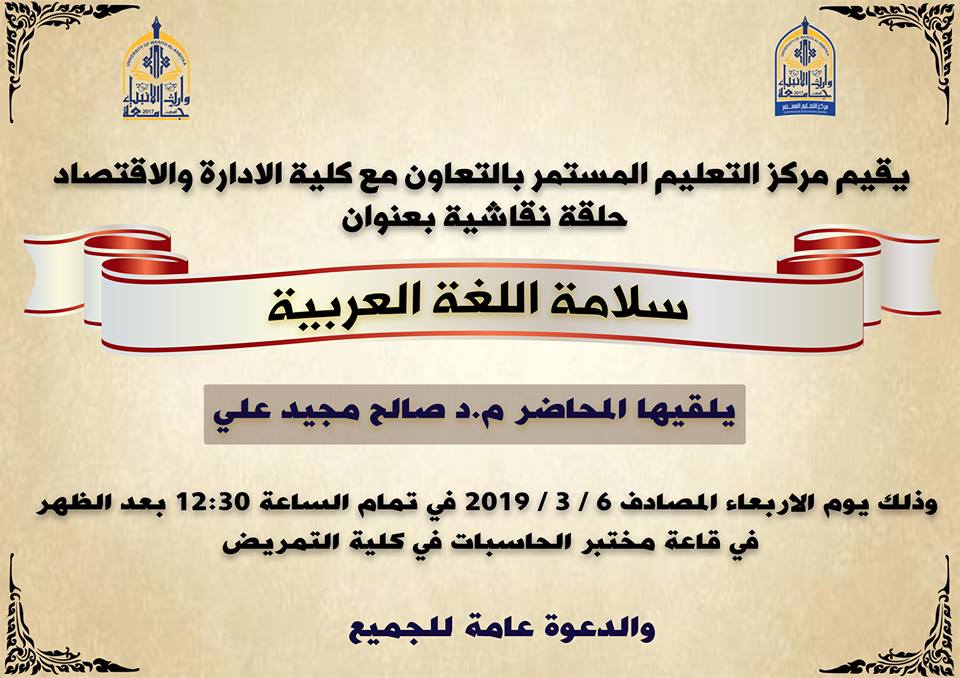 اقيمت في قاعة الامام الحسن -كلية الادارة والاقتصاد حلقة نقاشية بعنوان اعداد استمارة الاستبيان وكيفية استخدام نماذج Google في نشرها الكترونيا من قبل أ.د.عامر العطوي و م.م.علي عزيز وقد تضمنت الحلقة الاشارة الى العديد من المحاور المهمة التي تتعلق بمفهوم الاستبيان والية بناء الاستبيان والخطوات اللازم اتباعها من قبل باحثيين بالاضافة الى تقديم امثلة تطبيقية حول نماذج Google وقد شارك في الحلقة النقاشية المساعد العلمي لرئيس الجامعة أ.د.عباس الدعمي وتدريسي كلية الادارة والاقتصاد و عدد من تدريسي باقي الكليات وعدد من الطلبة