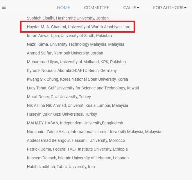 نظرا لماتمتلكه جامعة وارث الانبياء (عليه السلام) من طاقات أكاديمية علمية ،اختير المدرس الدكتور حيدر الغانمي مدير مركز التعليم المستمر ضمن اللجنة العلمية للمؤتمر الدولي الثامن لتطبيقات تكنولوجيا الحاسوب 2022 8th International Conference on Computer Technology Applications (ICCTA 2022, former ICCIT) الذي تقيمه جامعة العلوم التطبيقية في دولة النمسا University of Applied Sciences, Austria ويعد المؤتمر ضمن اهم المؤتمرات المعروفة التي تعقدها واحدة من افضل الجامعات العالمية الرصينة في مجال التكنولوجيا والكمبيوتر وتشارك في تحضيره مختلف دول العالم الحديث كاليونان وكوريا والنمسا وفرنسا والمانيا وغيرها وقد تم اختيار الدكتور حيدر الغانمي كممثلا عن العراق .رابط المؤتمر: http://iccit.org/committee.htm