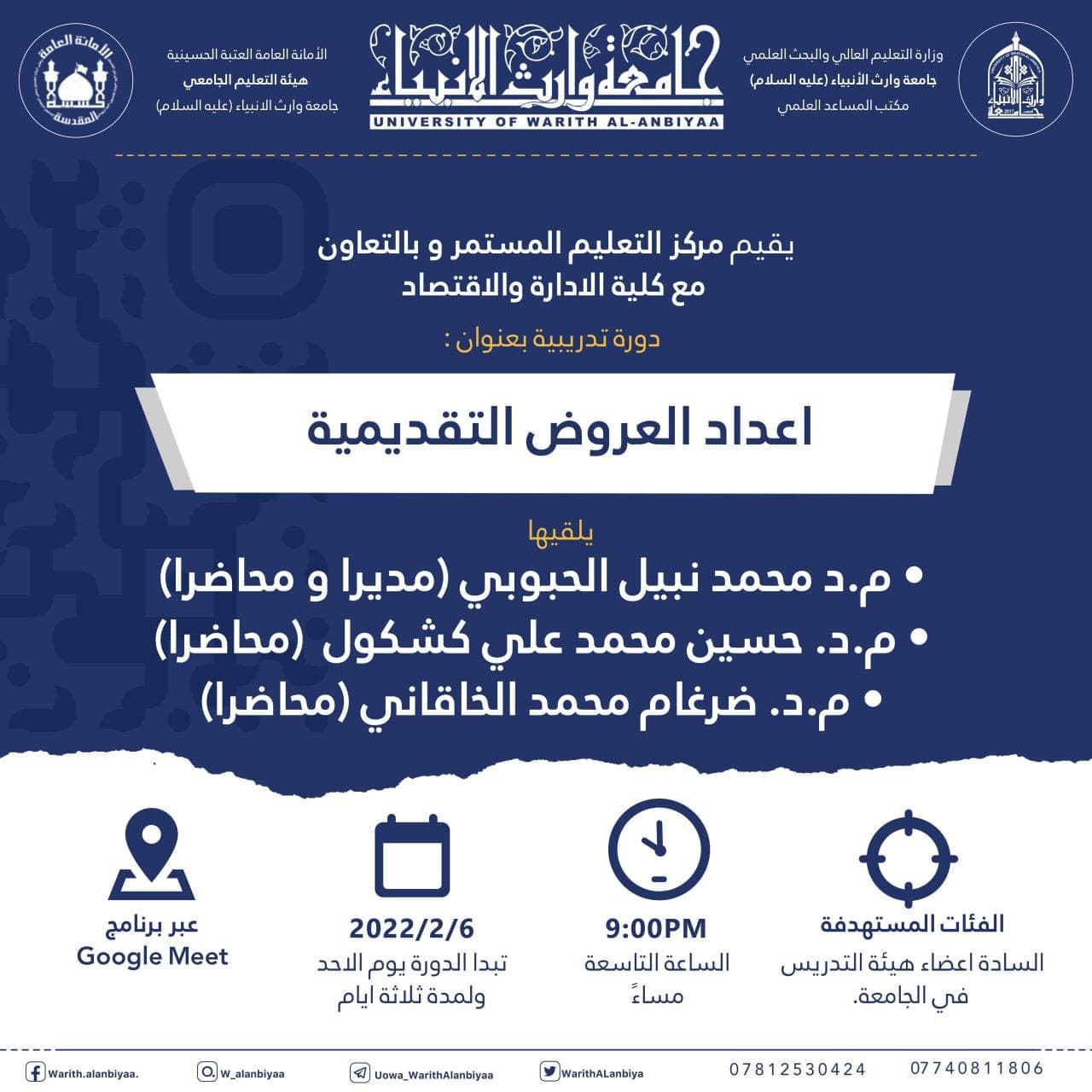 تتقدم جامعة وراث الأنبياء (عليه السلام) بالتعزية والمواساة الى الدكتورة نضال المالكي لوفاة والدتها سائلين الله أن يتغمدها بوافر رحمته إنه سميع مجيب