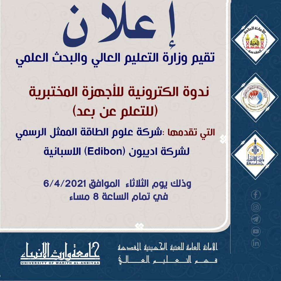 تقيم وزارة التعليم العالي والبحث العلمي ندوة علمية إلكترونية