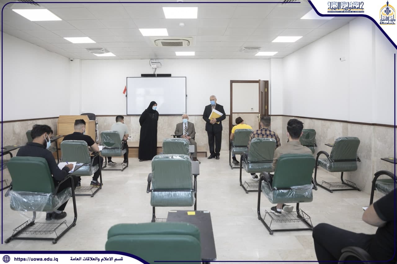 جانب من القاعات الامتحانية لقسم التكييف والتبريد في جامعه وارث الأنبياء ليوم الثلاثاء المصادف ٦ / ٤ / ٢٠٢١ والذي يعكس صوره مثاليه لتطبيق التباعد الاجتماعي والالتزام بارتداء الكمامات تنفيذا لقرارات خلية الأزمة لمنع تفشي فيروس كورونا.