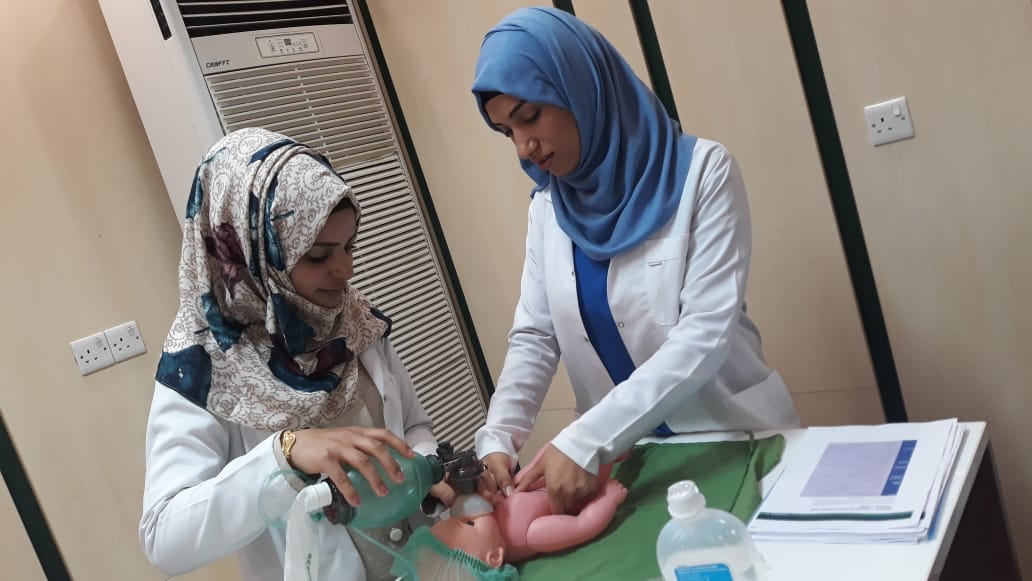 في إطار التعاون العلمي بين جامعة وارث الأنبياء(عليه السلام) ومستشفى الإمام زين العابدين (عليه السلام) شاركة عدد من طلبة كلية التمريض بدورة تدريبية حول إنعاش الاطفال حديثي الولادة NRP