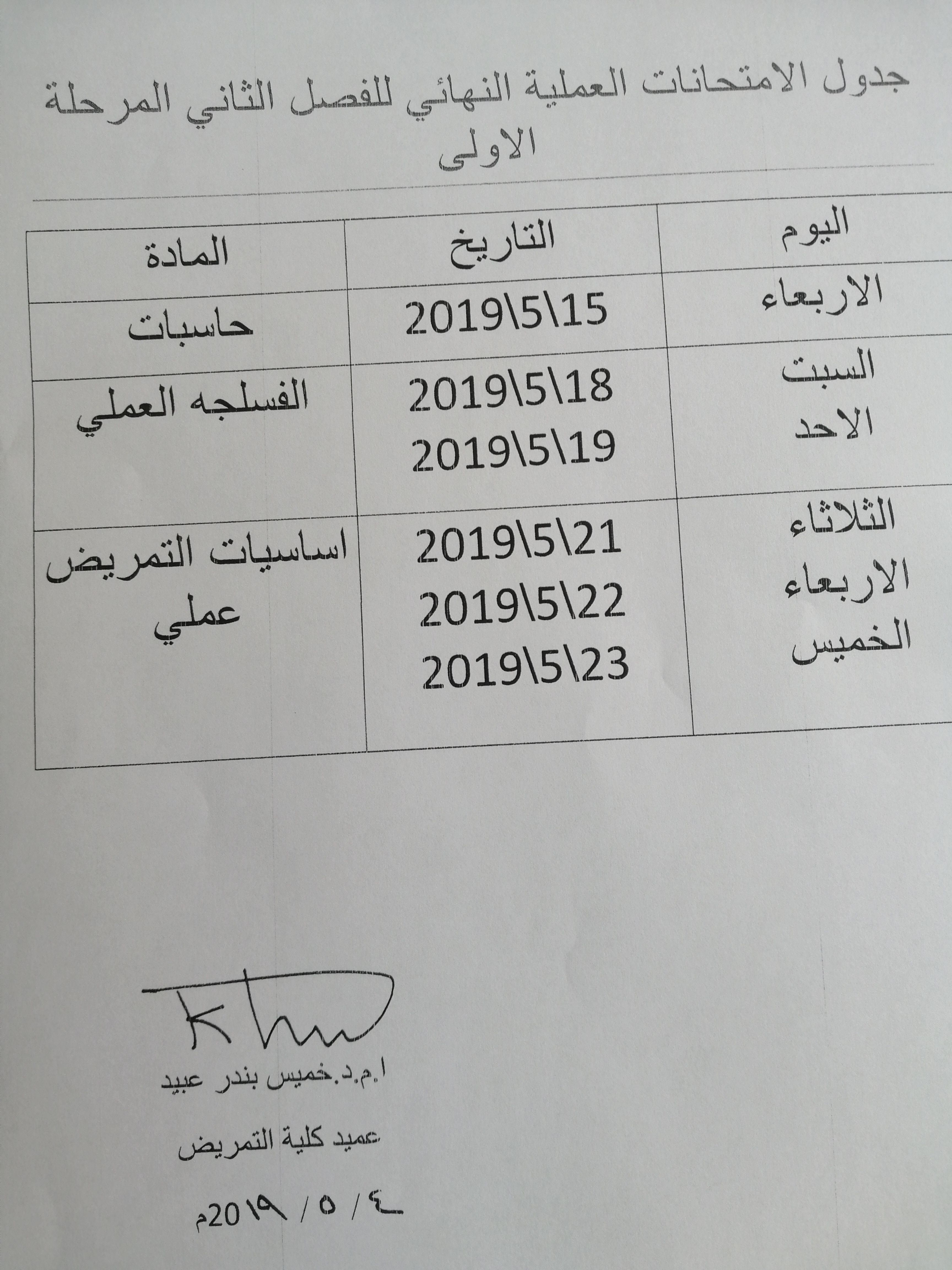 يلقيها كل من الاستاذ ذوالفقار عباس المسعودي والاستاذ عبدالرضا محمد الاسدي، في مختبر الفسلجة الطبية في كلية التمريض في تمام الساعة الحادية عشر من يوم الاربعاء المصادف ١٠/٤/٢٠١٩.