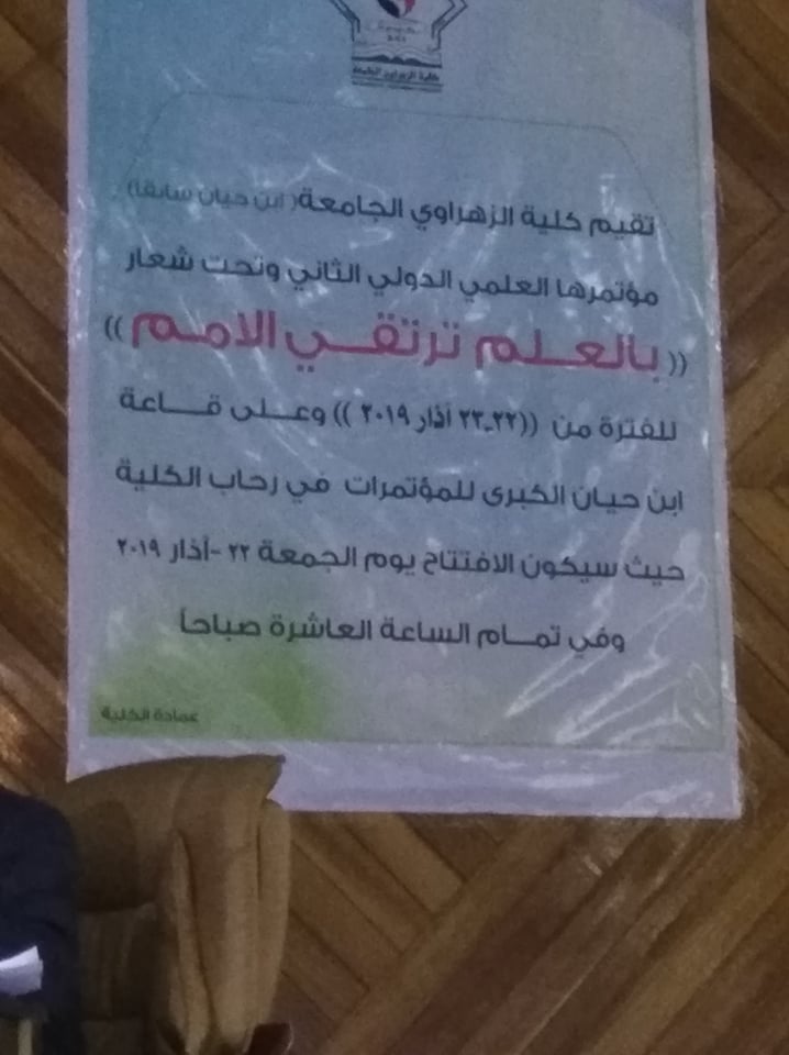 كلية التمريض/جامعة وارث الانبياء ع تشارك في المؤتمر العالمي الأول للعلوم الطبية حيث حضر المؤتمر وفد يمثل كلية التمريض على فعاليات المؤتمر العالمي الأول للعلوم الطبية الذي اقامتة جامعة العميد متمثلا بالاستاذ المساعد الدكتور خميس بندر عبيد السعيدي/عميد كلية التمريض والاستاذ احمد محمد جاسم/تدريسي في كلية التمريض ووفد من رئاسة جامعة وارث الانبياء ع .